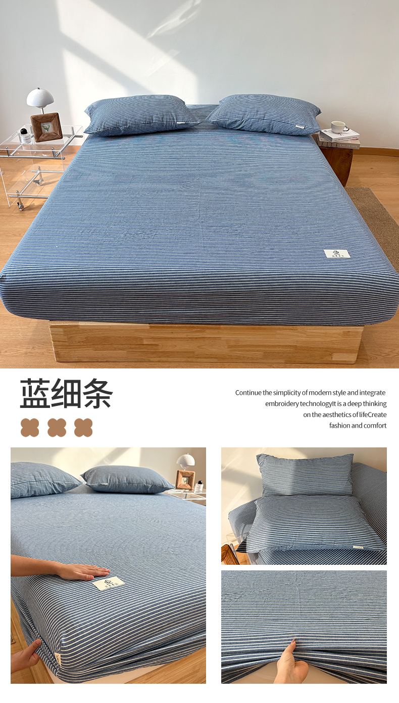 • 91家纺网 家纺一手货源 找家纺 居眠 2025新款单层色织水洗格子全棉纯棉单床笠床笠单件单品床笠 蓝细条