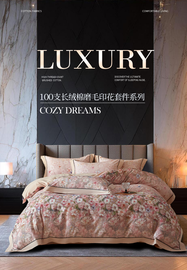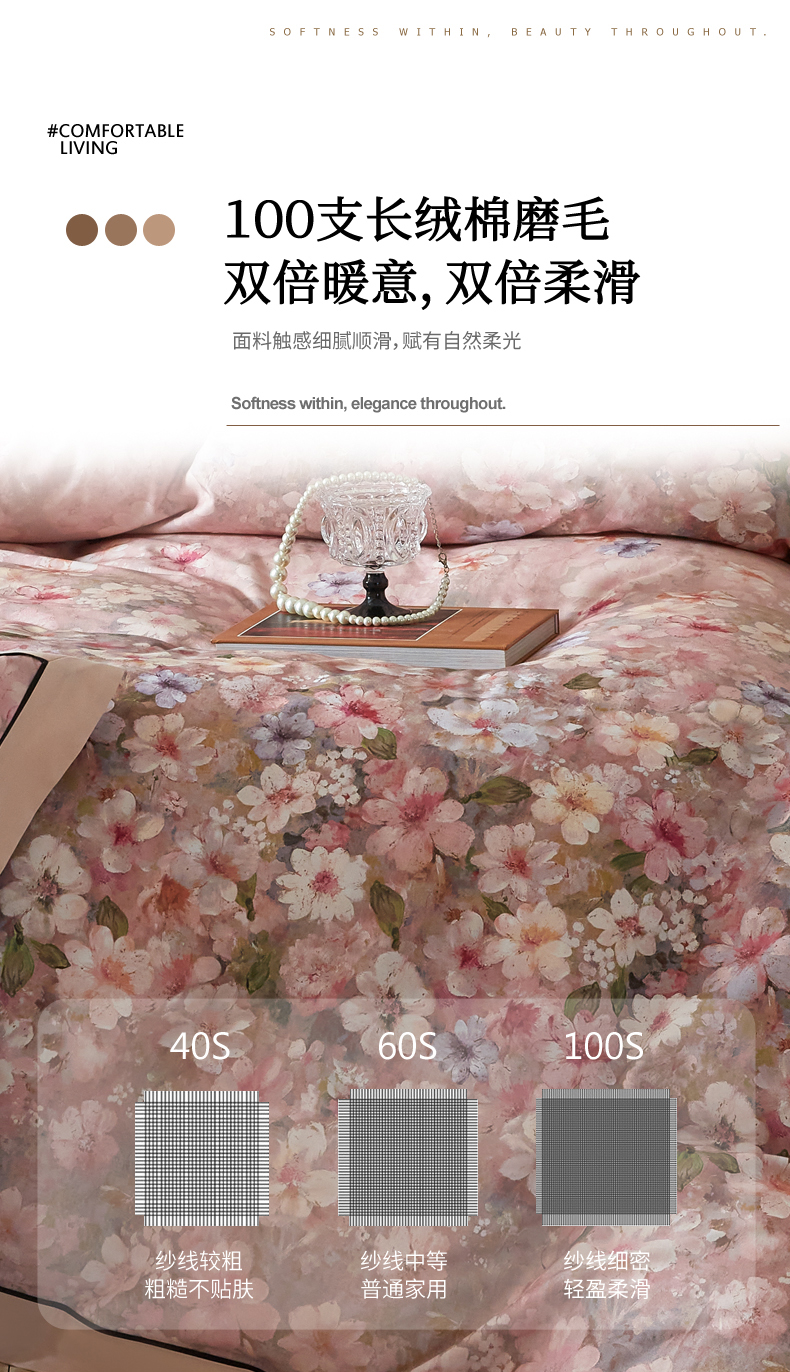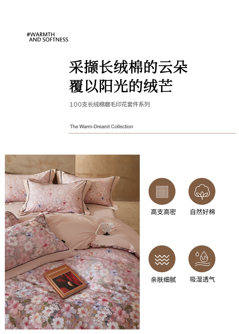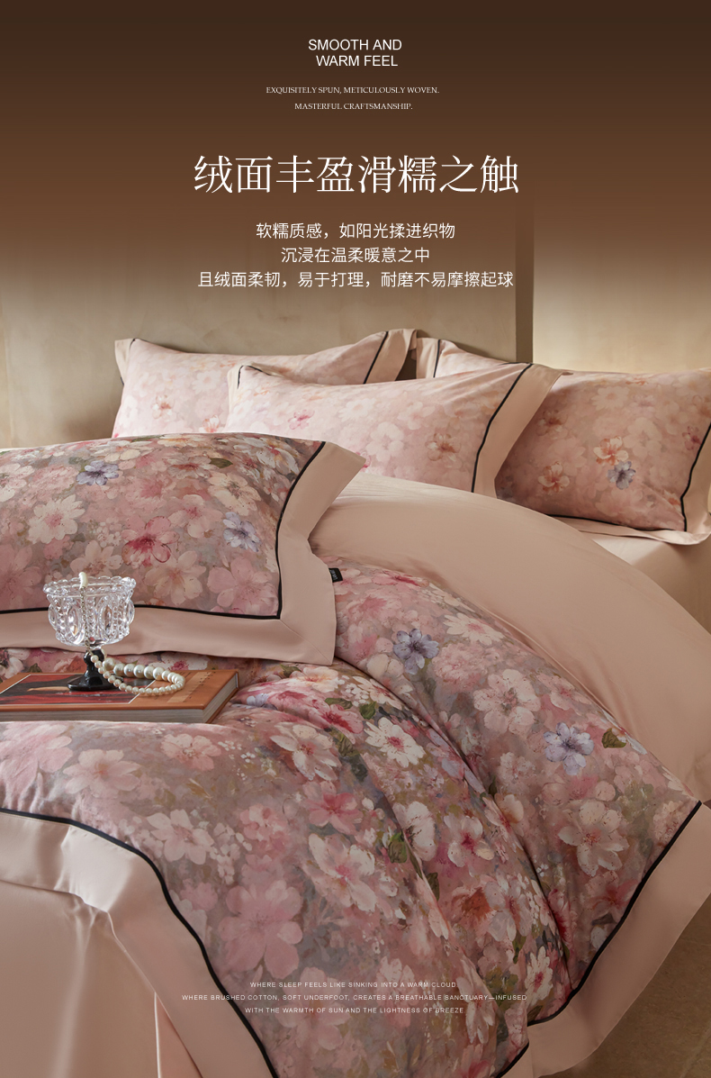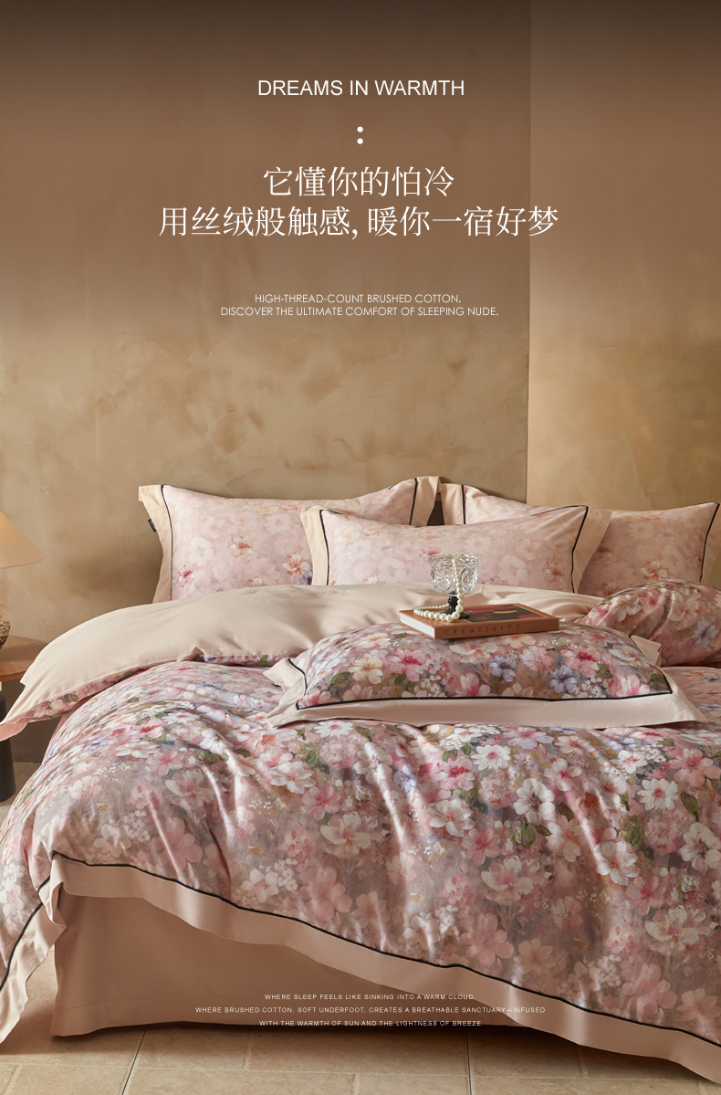 (总)洺兰家居 2026年新疆长绒棉100支秋冬款轻磨毛加厚保暖工艺款四件套床上用品,路易斯-米,千屿-曼卡粉,一见倾心-米,羽纱-卡其,织梦-粉,栀子花开-绿