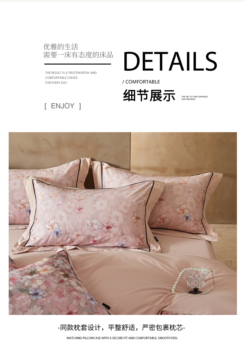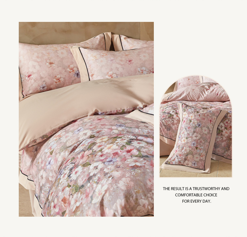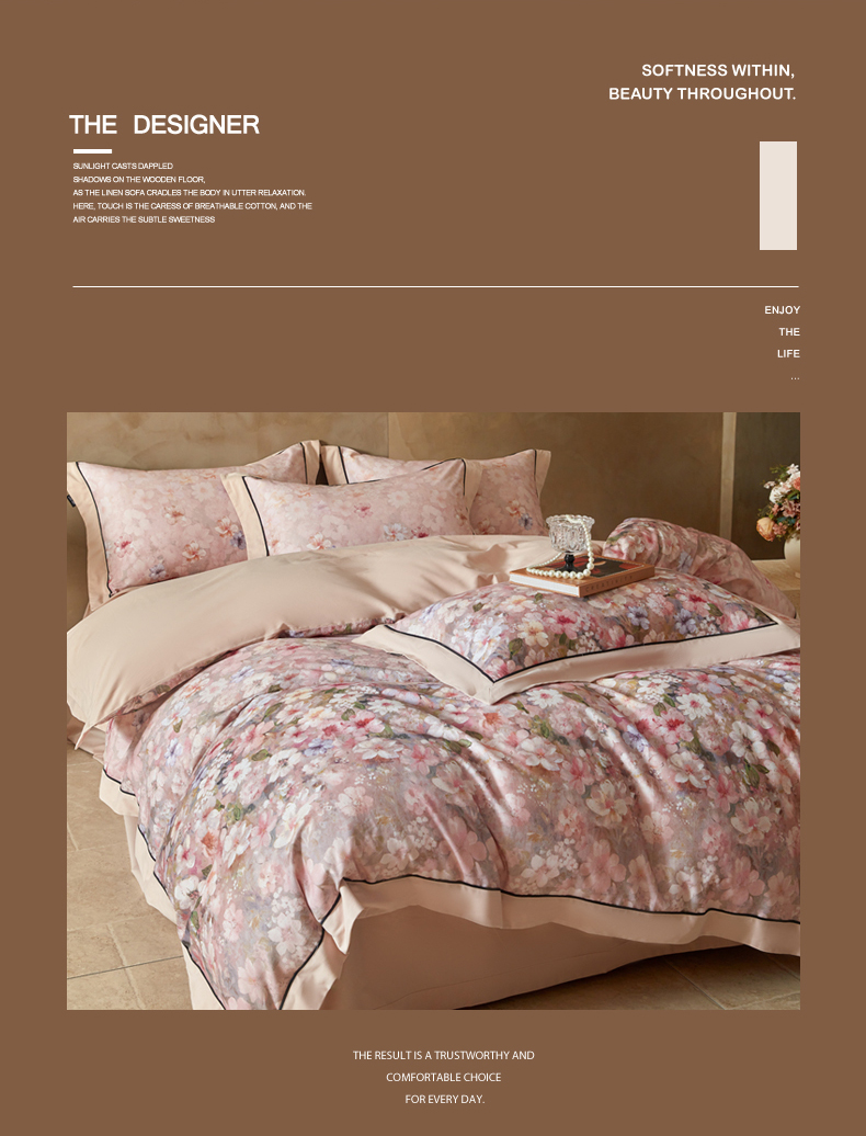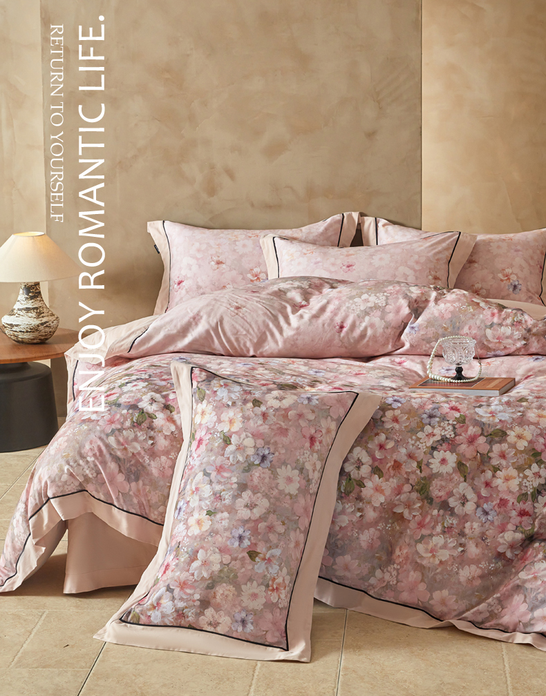 (总)洺兰家居 2026年新疆长绒棉100支天丝棉高端工艺款床单床笠四件套床上用品,淡若清香,陌上花开,羽墨