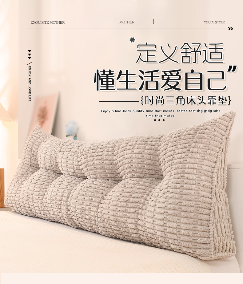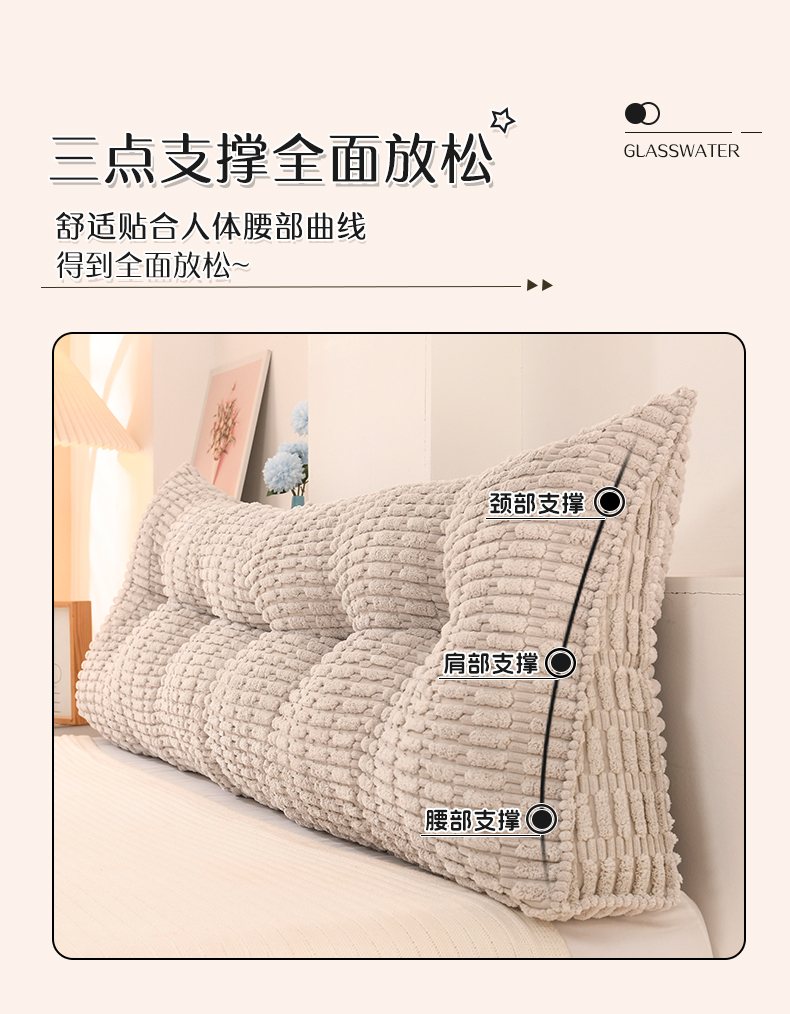 (总)碧尔家居 2025新款榻榻米床头靠枕大靠背卧室护腰靠垫可拆洗沙发双人软包三角玉米绒带头枕,米白,牛仔蓝,银灰
