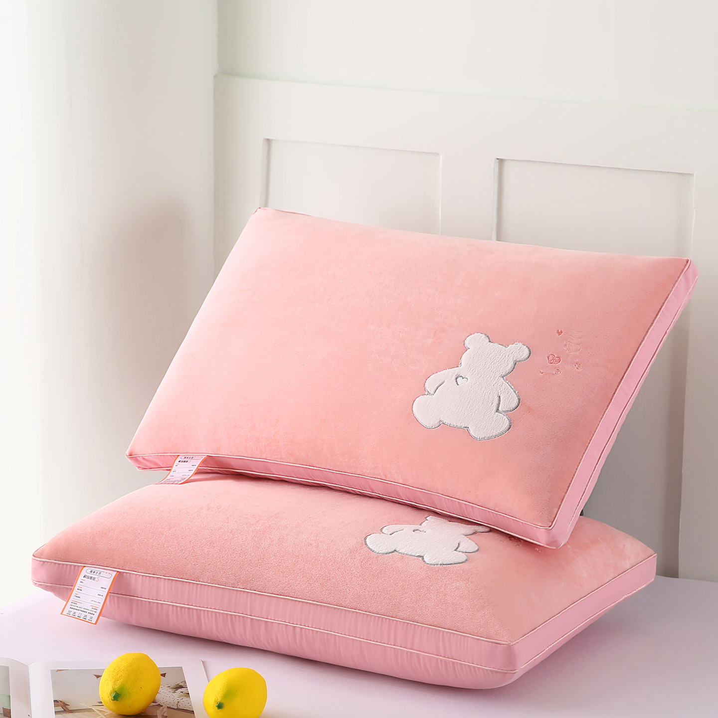 永乐枕芯 2025新款热绒款贴布绣枕头枕芯 小熊-浅灰