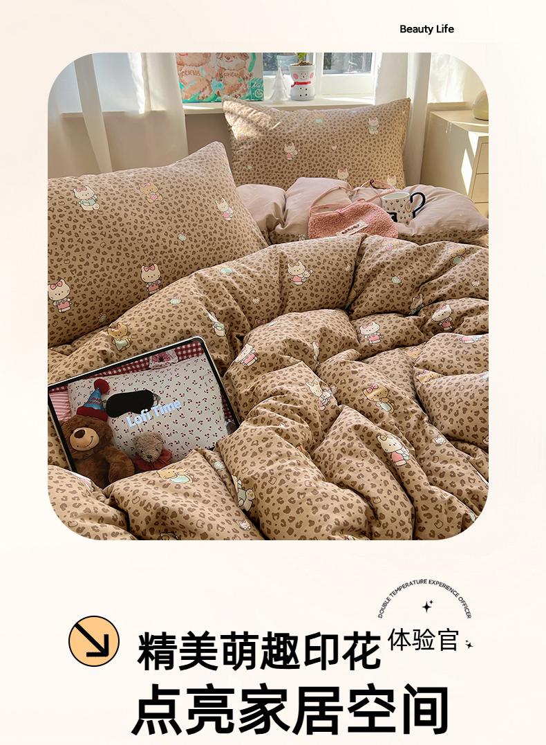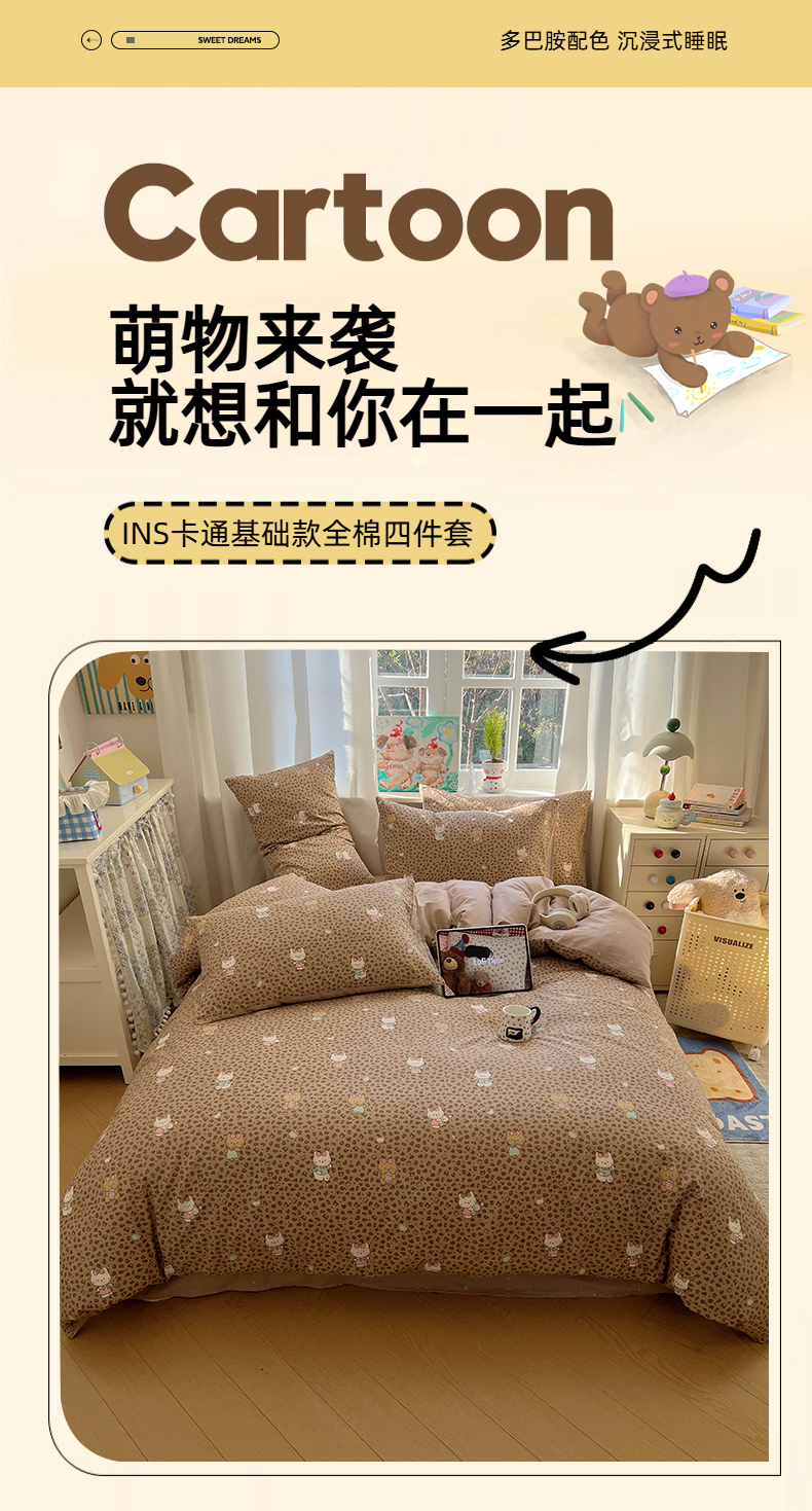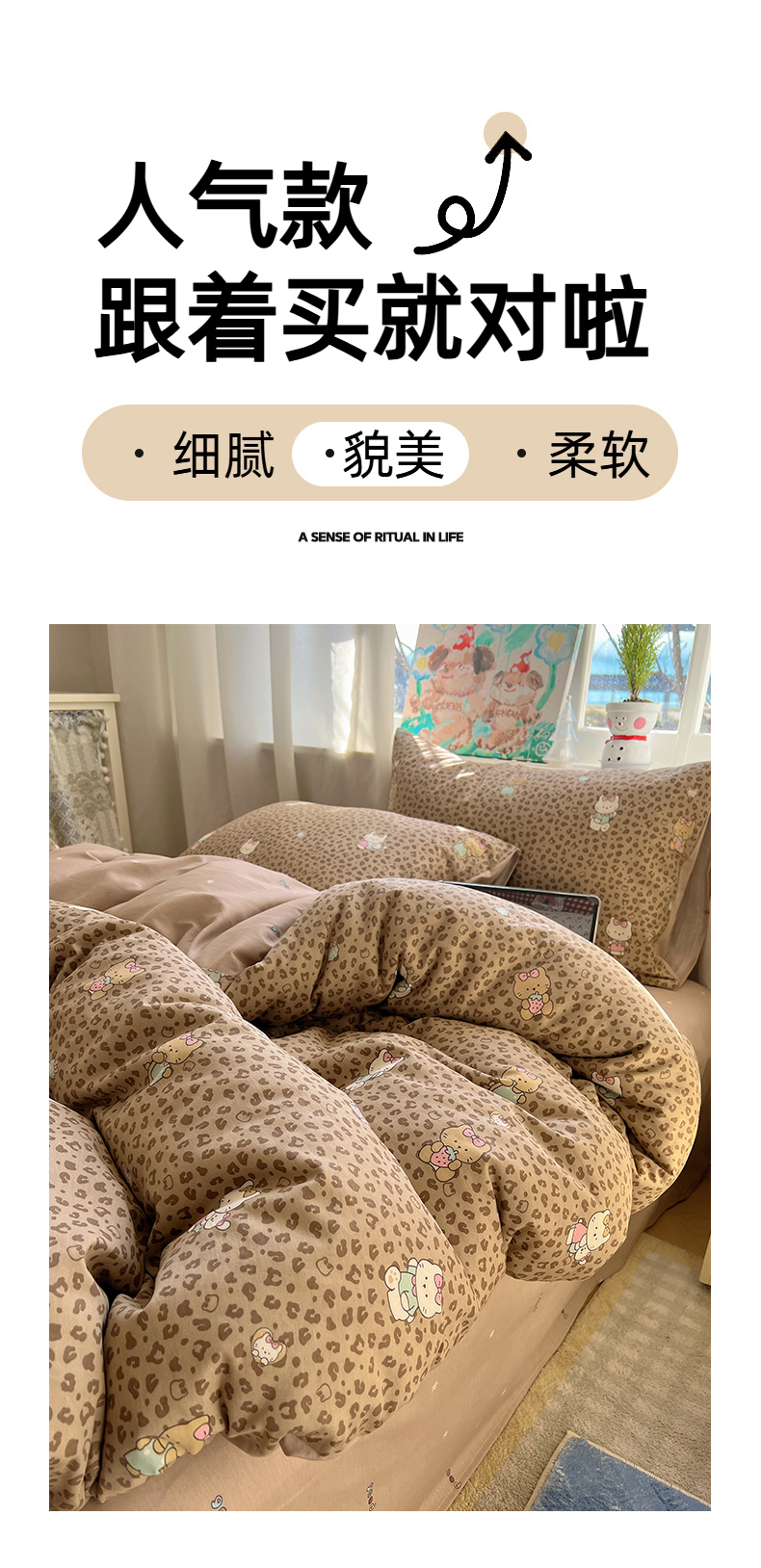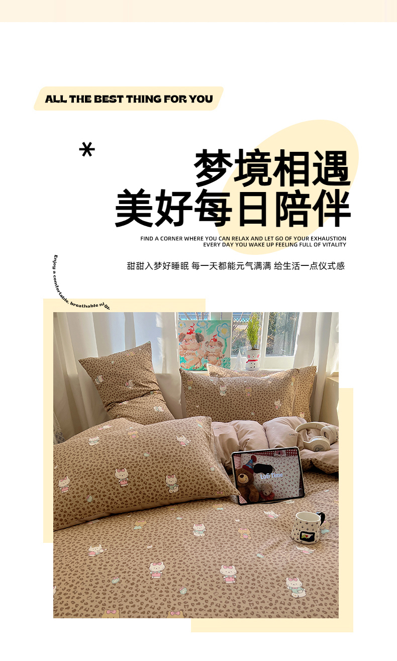 当前位置: 91家纺网 > 商品网购 > 床品套件 > 四件套 > 全棉普通四件套 > 六巷胡同 2026春夏新款INS卡通基础款全棉纯棉四件套-系列一 咖豹纹喵喵