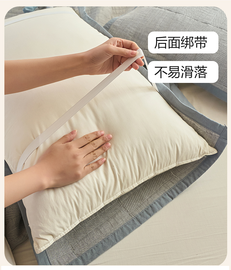 商品名称:棠薇家纺 2025新款提花绑带款枕巾棉纱布枕巾夹棉枕头巾 纯色木兰灰
