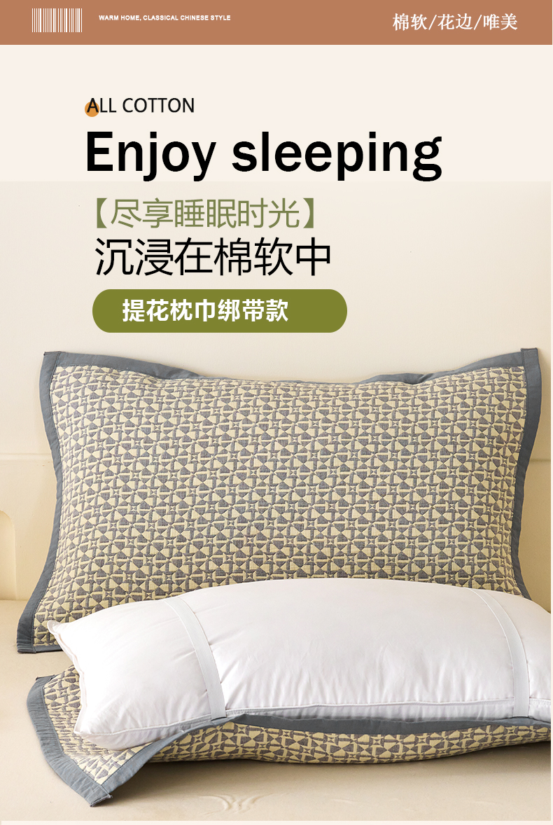 (总)棠薇家纺 2025新款提花绑带款枕巾棉纱布枕巾夹棉枕头巾,木影湖灰,纯色木兰粉,纯色木兰灰,纯色三角灰,纯色三角绿,纯色三角驼,纯色圆圈粉,纯色圆圈灰,纯色圆圈驼,古典风情,菱格灰,菱格紫,罗马故事,木影驼兰,欧式风尚,素练浮光灰,素练浮光紫,星空绿,圆点生活