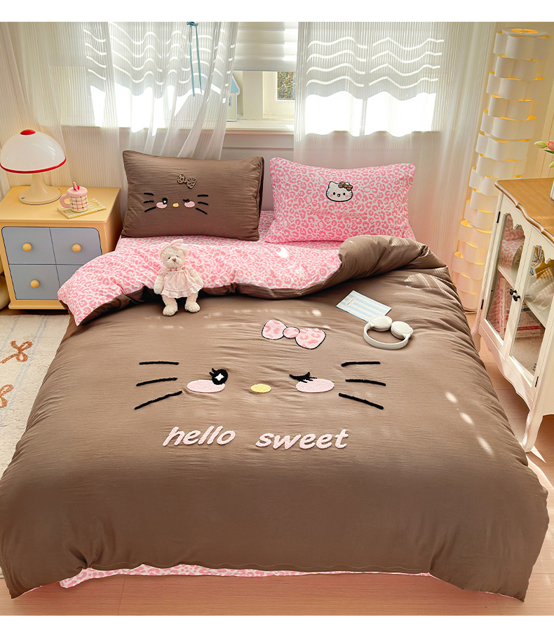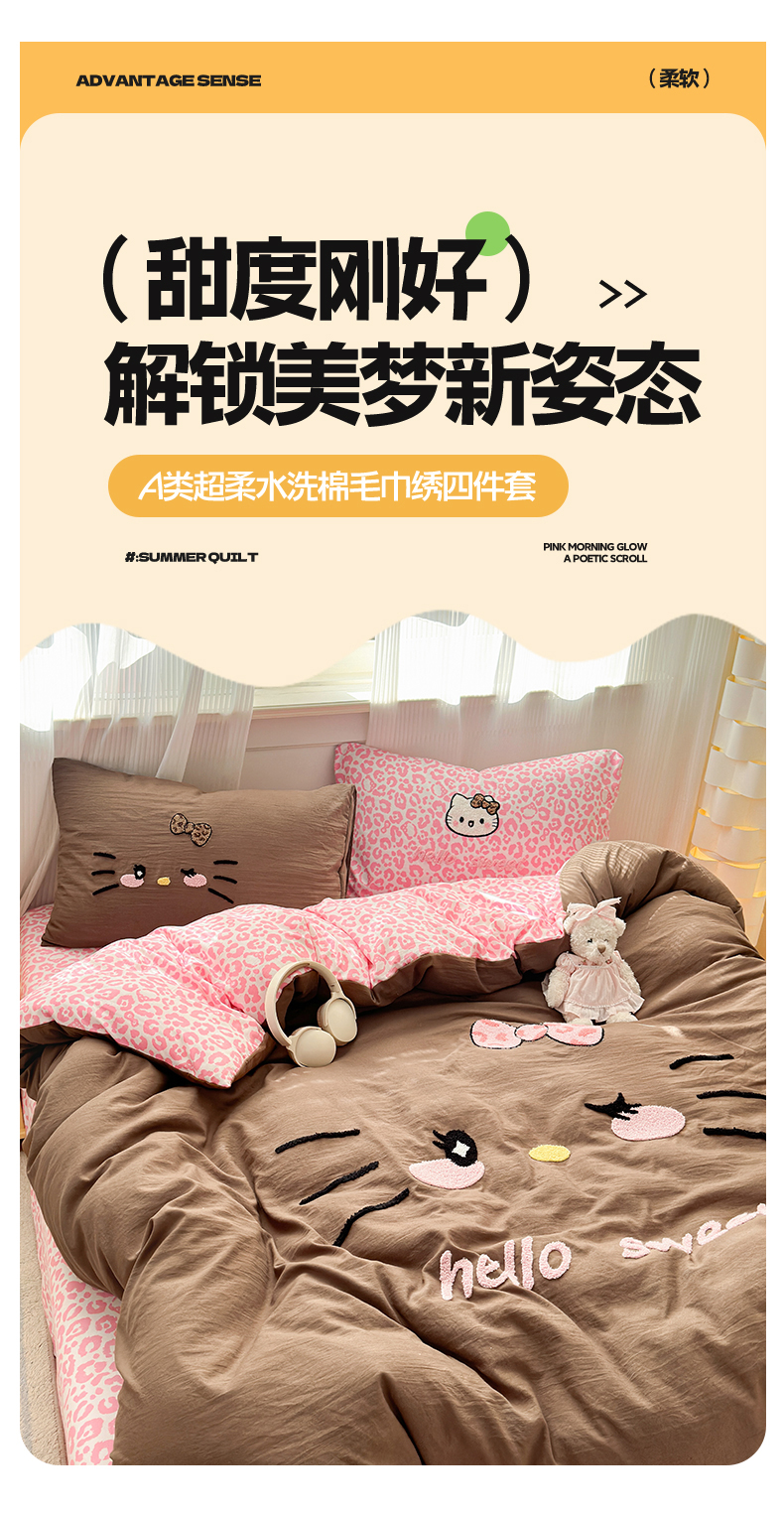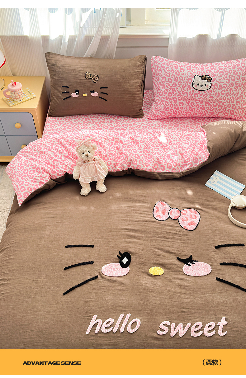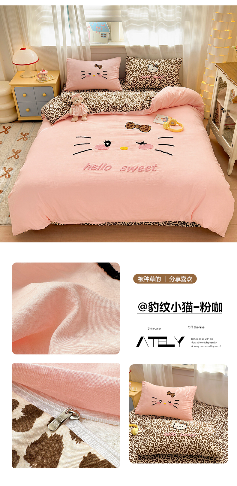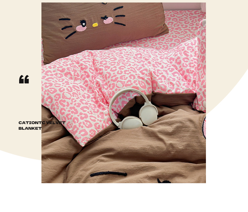当前位置: 91家纺网 > 商品网购 > 床品套件 > 四件套 > 水洗棉四件套 > 奈颜 2026新款A类水洗棉大版毛巾绣豹纹小猫四件套--影棚图 豹纹小猫-咖粉