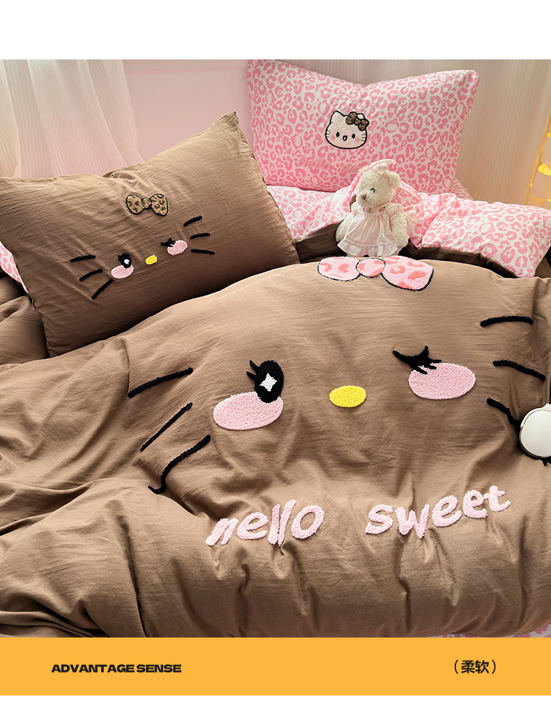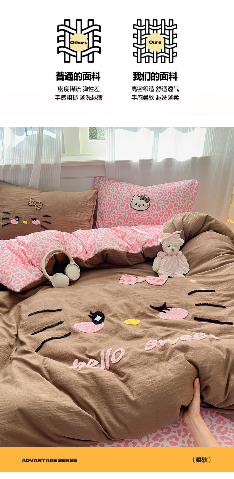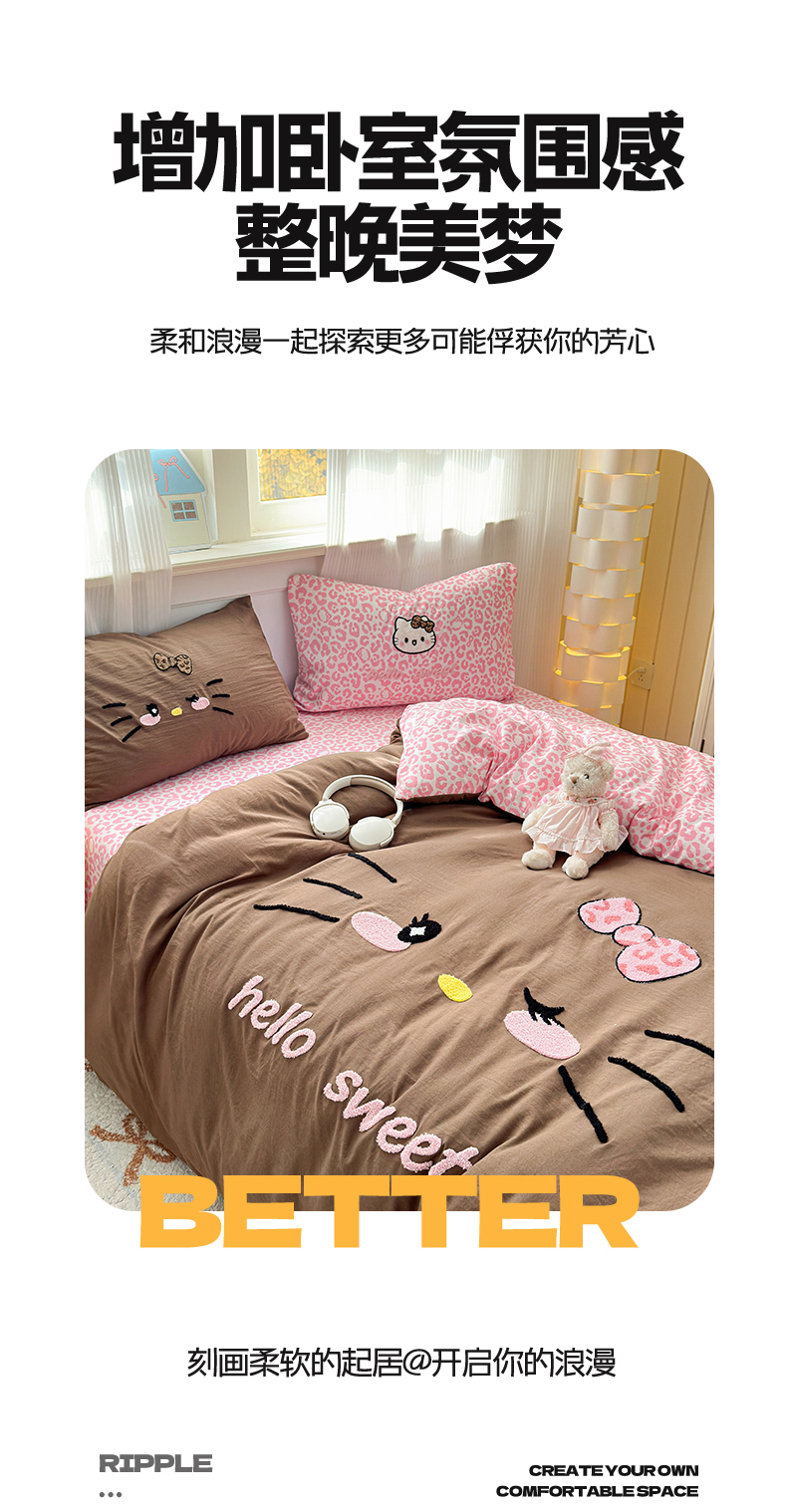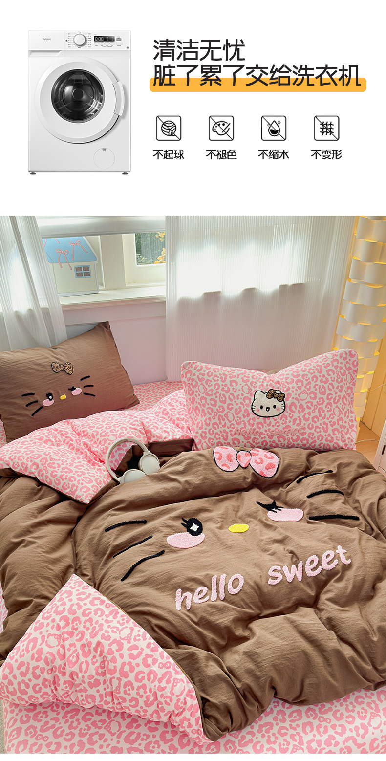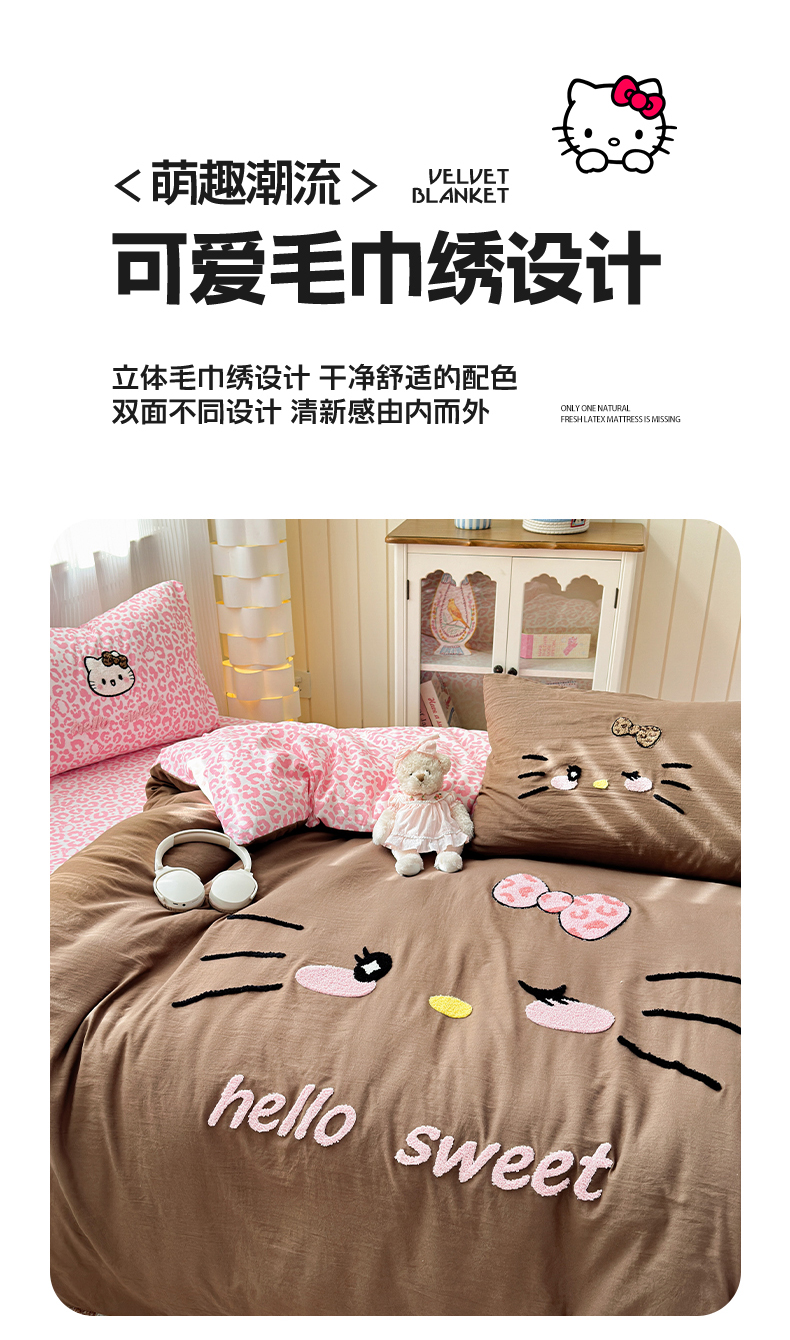 当前位置: 91家纺网 > 商品网购 > 床品套件 > 四件套 > 水洗棉四件套 > 奈颜 2026新款A类水洗棉大版毛巾绣豹纹小猫四件套--影棚图 豹纹小猫-咖粉