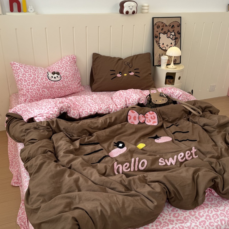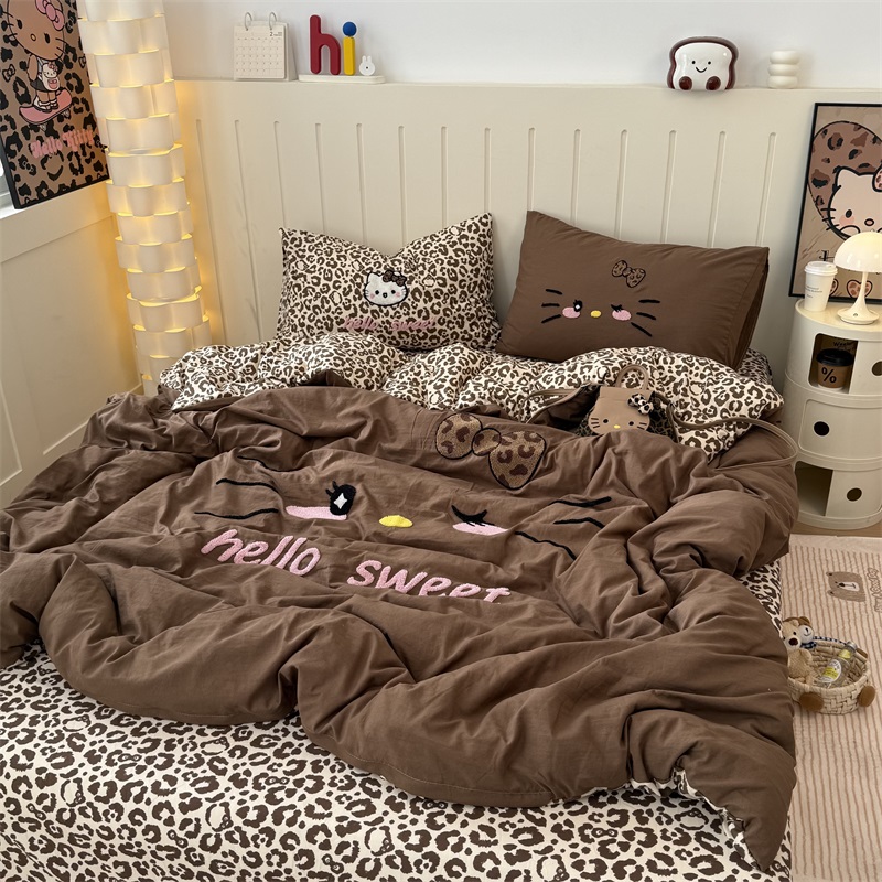 当前位置: 91家纺网 > 商品网购 > 床品套件 > 四件套 > 水洗棉四件套 > 奈颜 2026新款A类水洗棉大版毛巾绣豹纹小猫四件套--实拍图 豹纹小猫-咖粉