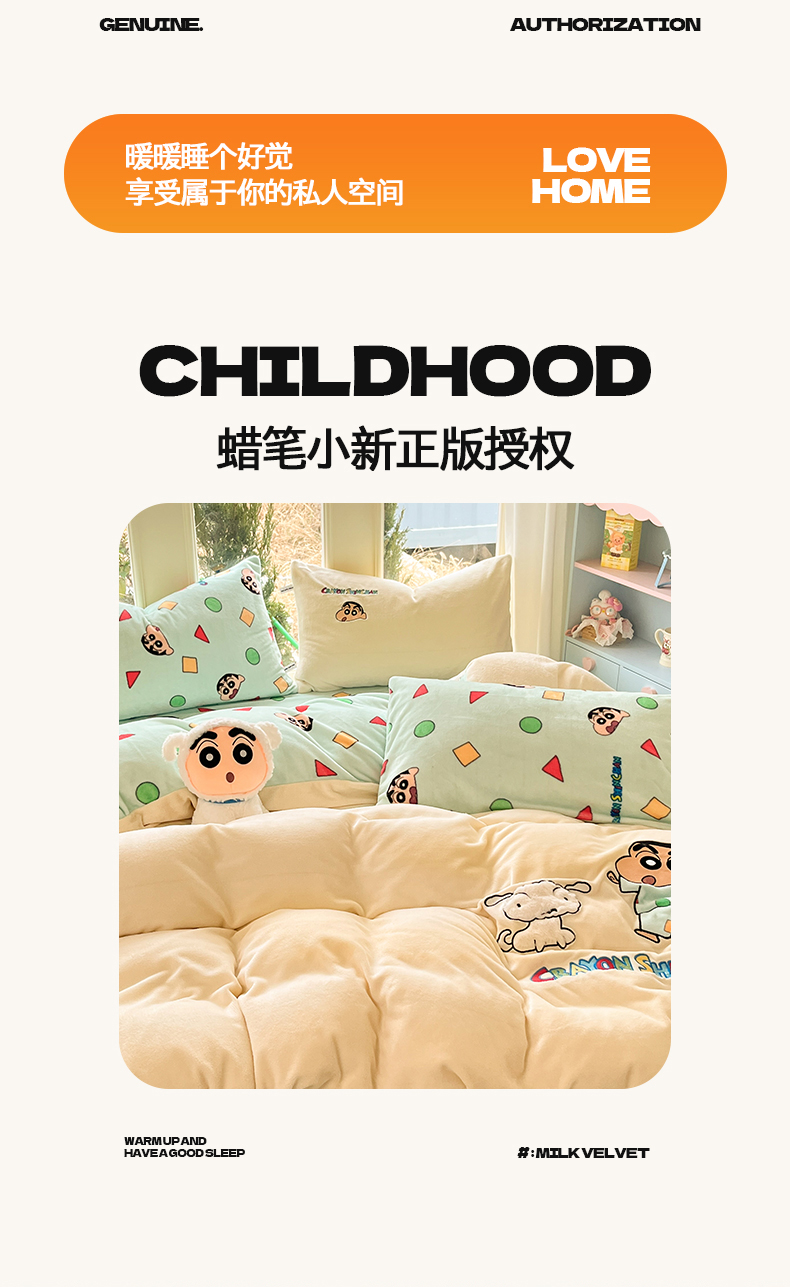 (总)桃子家居 2026新款A类蜡笔小新正版授权卡通加厚高克重牛奶绒系列四件套,绒-欢乐小新,绒-蓝格星星小新,绒-贪睡小新,绒-幸福小新