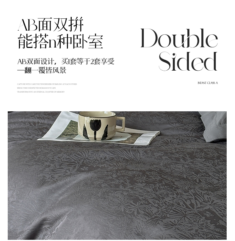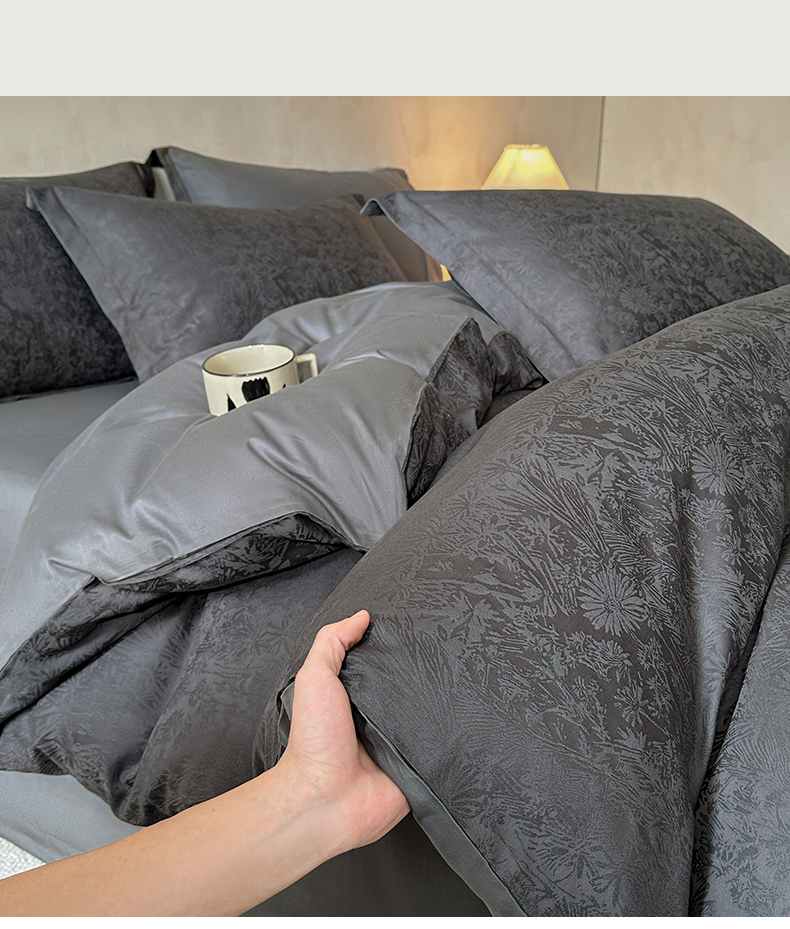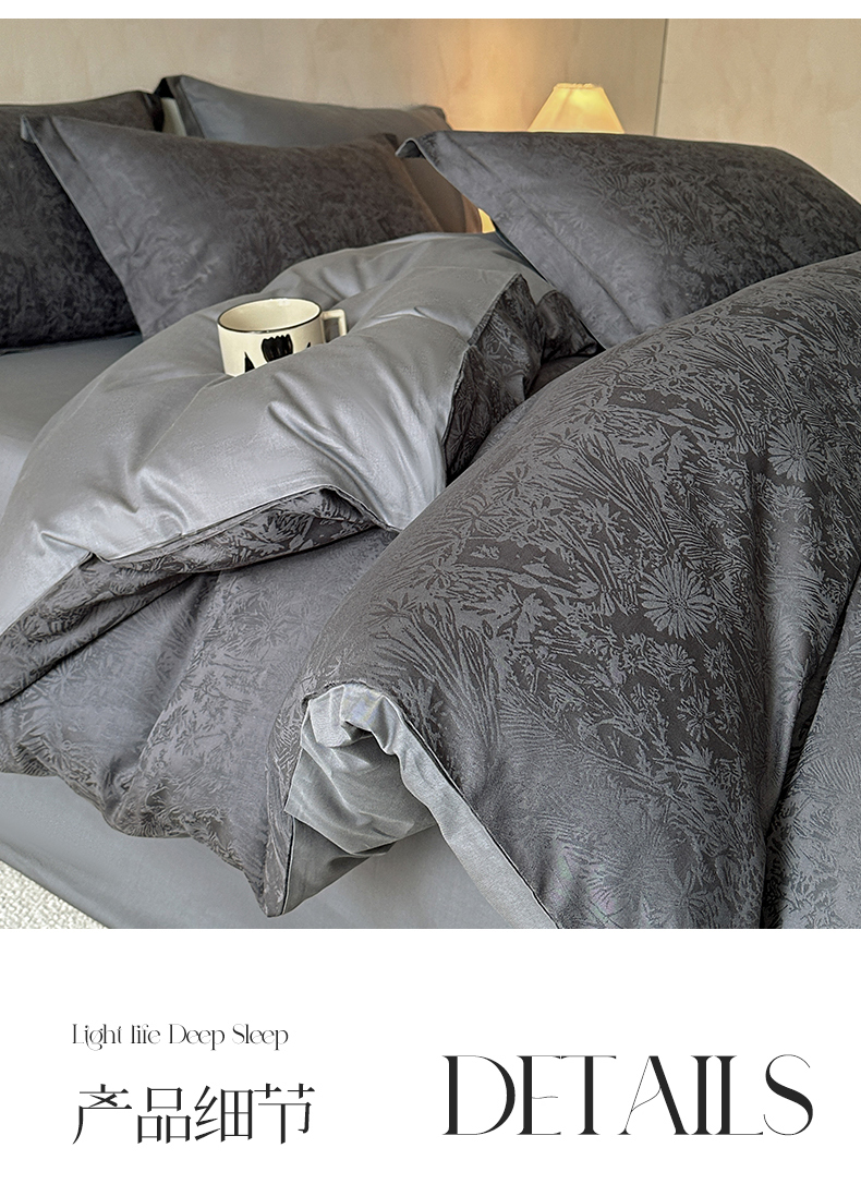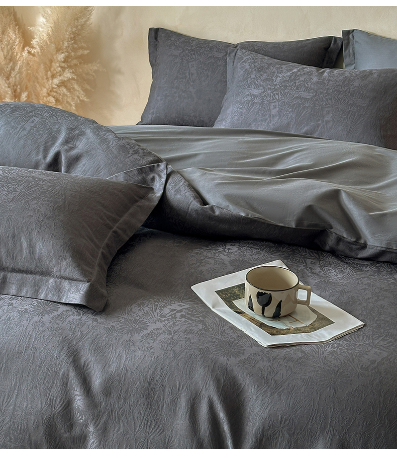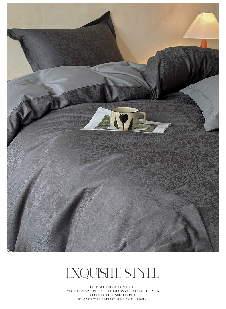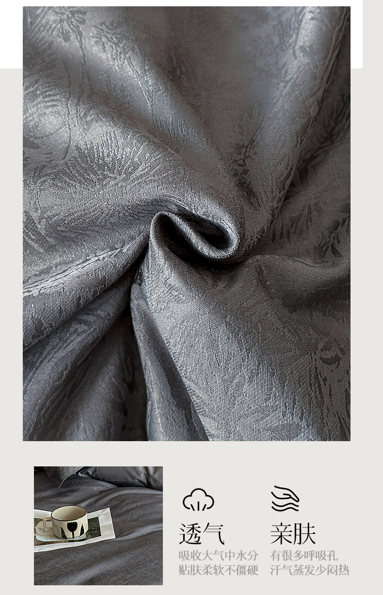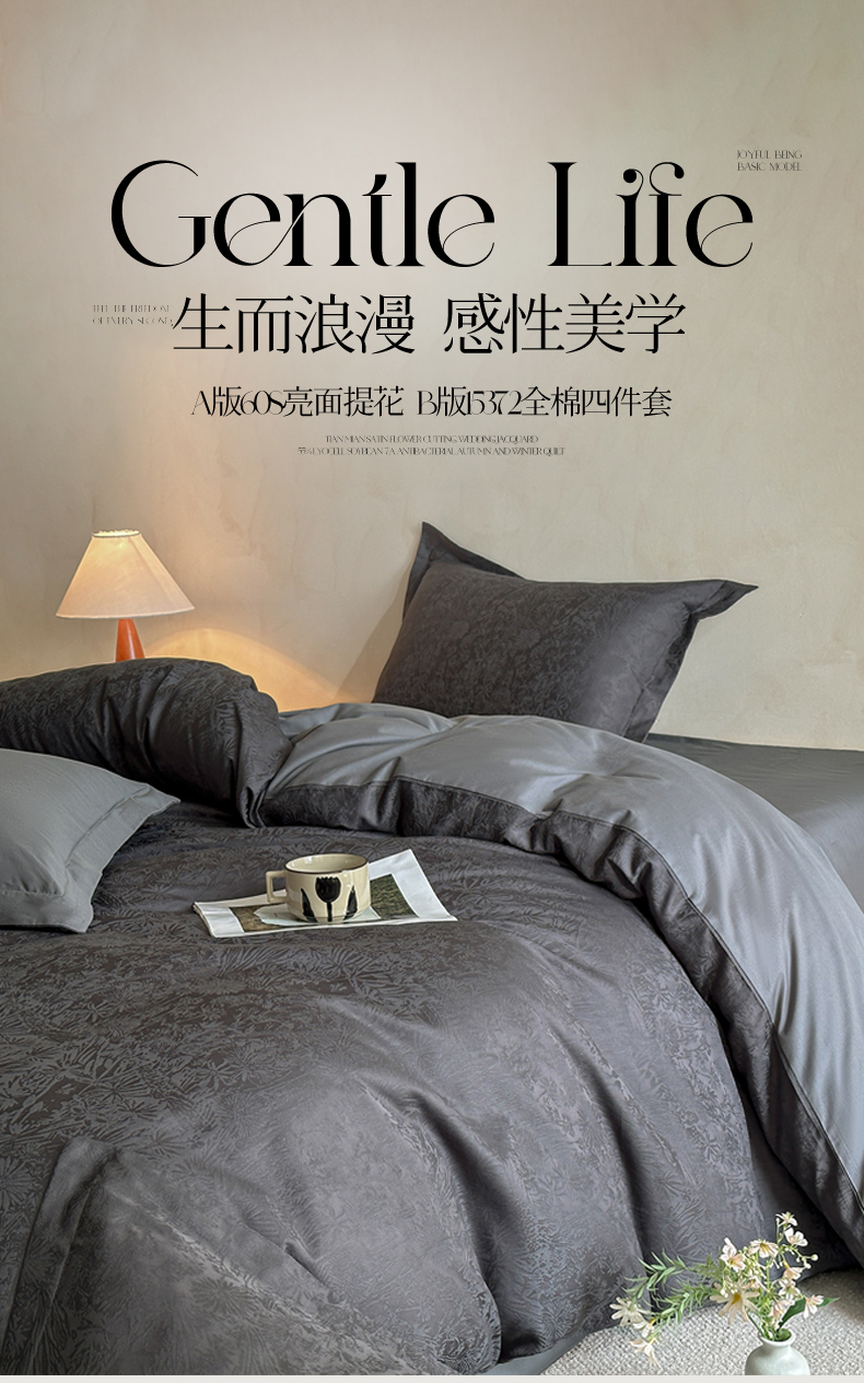 笙意家纺 2026新款A版60S亮面提花B版13372全棉四件套 米萝-灰