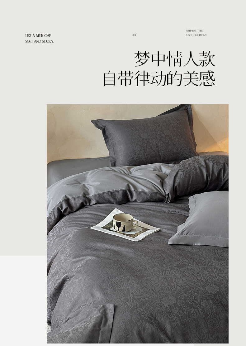 商品名称:笙意家纺 2026新款A版60S亮面提花B版13372全棉四件套 米萝-灰