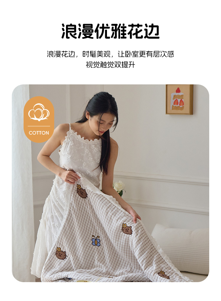商品名称:沐瑟家纺 2026新款A类全棉纱布泡芙被春秋被被被子被芯 小熊发卡