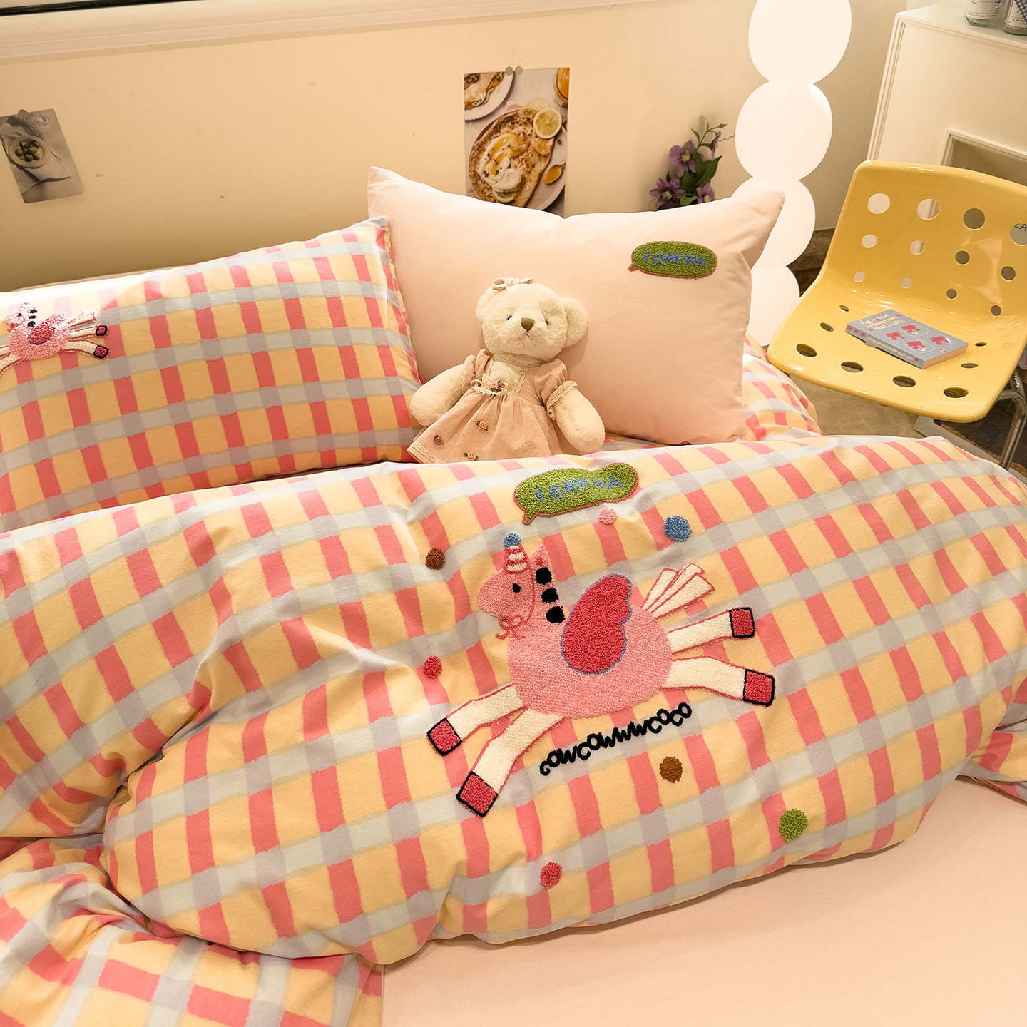 (总)2023新款40支纱全棉13070锁边工艺款四件套系列,格子爱心,嘉兰,咖条,朗尼,小兔兔,星星兔