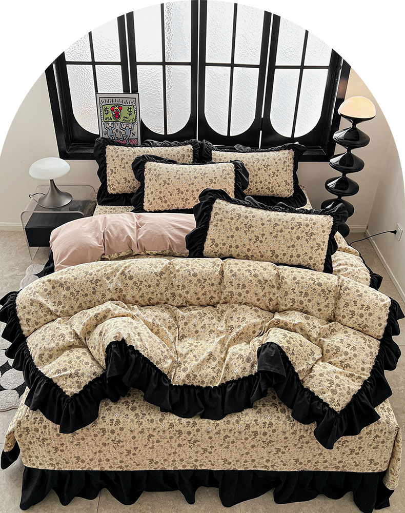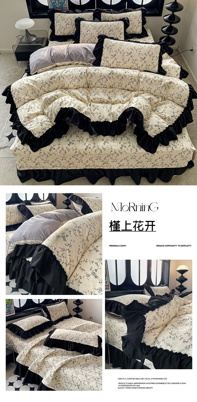 当前位置: 91家纺网 > 商品网购 > 床品套件 > 四件套 > 其它四件套 > 富米莱(原臻工厂) 2026新款法式赫本风大花边A类古法仿棉云感纱床盖床裙四件套 知否