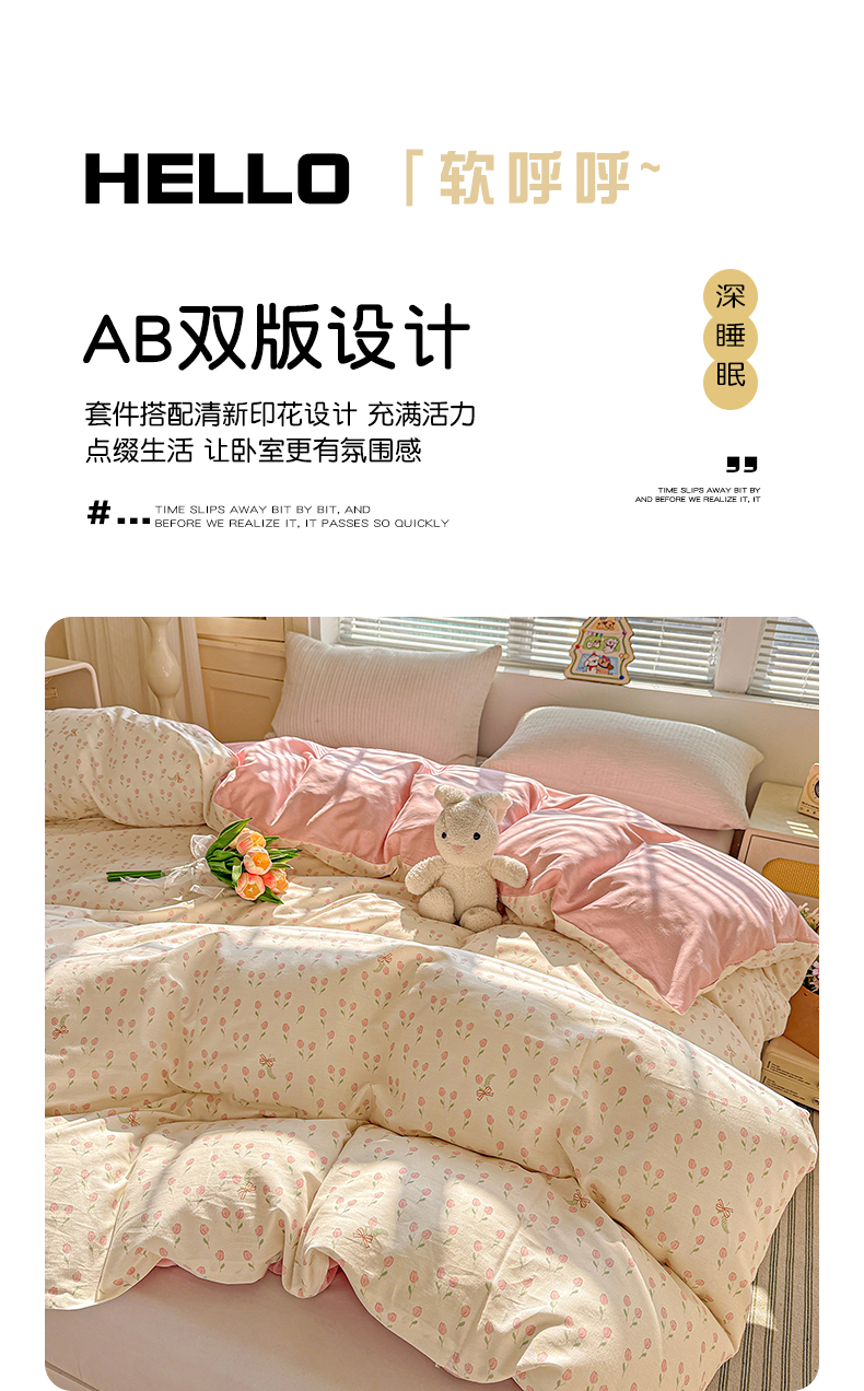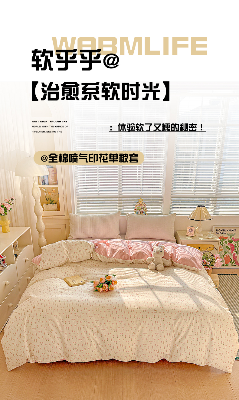 (总)卡普2025新款全棉小清新印花直播热款四件套--暖阳,暖阳