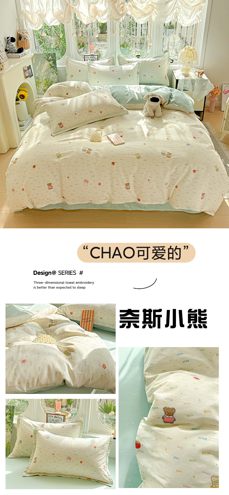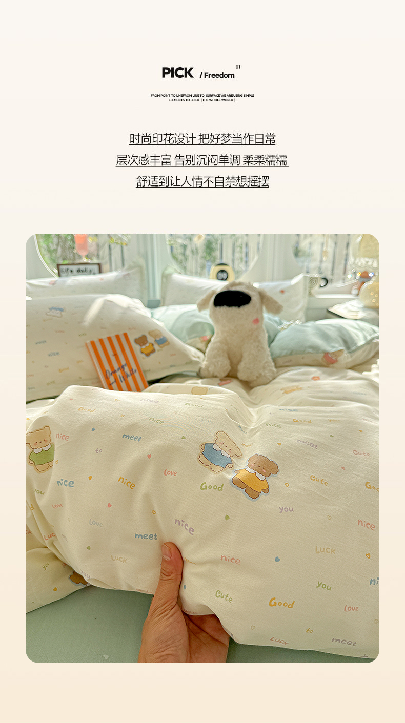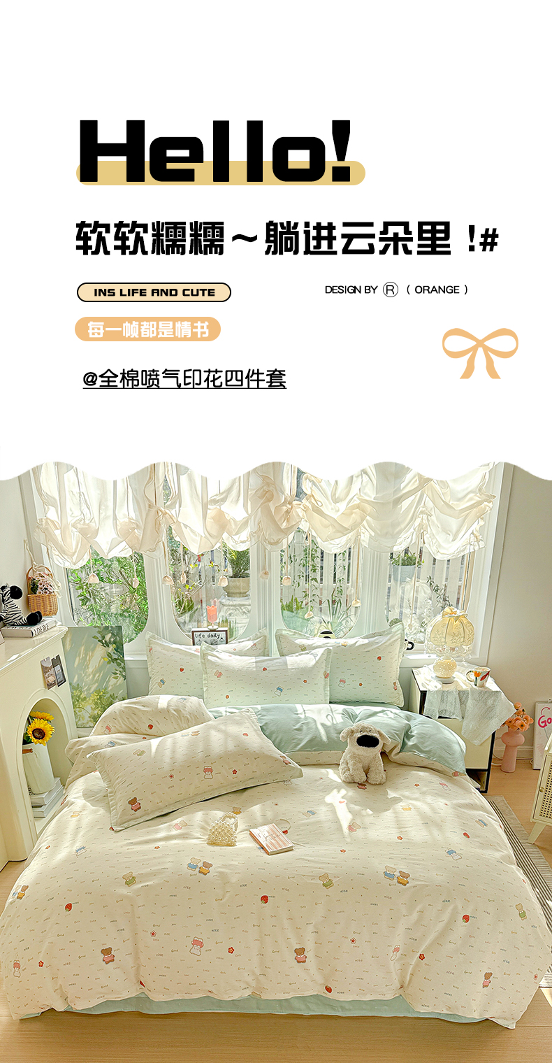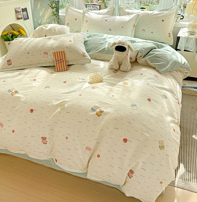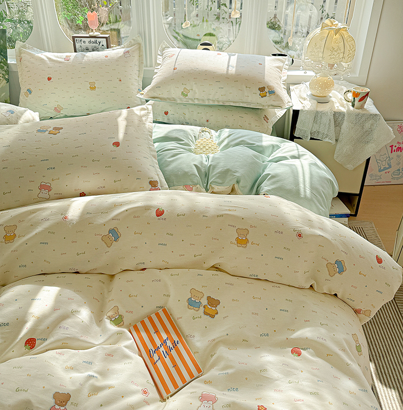 当前位置: 91家纺网 > 商品网购 > 床品套件 > 四件套 > 全棉普通四件套 > 卡普纯棉全棉四件套13070喷气床单款床笠款三件套 奈斯小熊