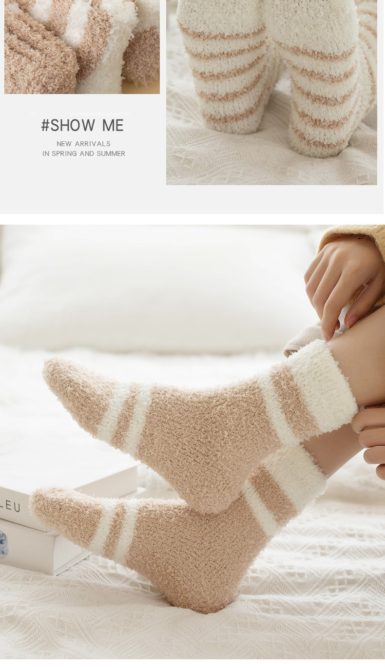 当前位置: 91家纺网 > 商品网购 > 居家日用 > 其他分类 > 良品汇馆 2026新款【女士珊瑚绒袜】珊瑚袜子女加厚保暖地板袜秋冬中筒袜女士加绒月子袜 新-白底粗条纹 均码