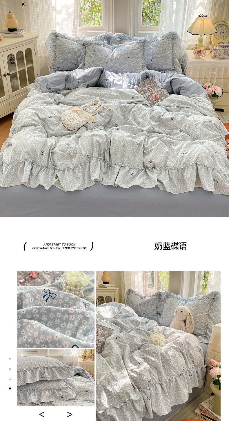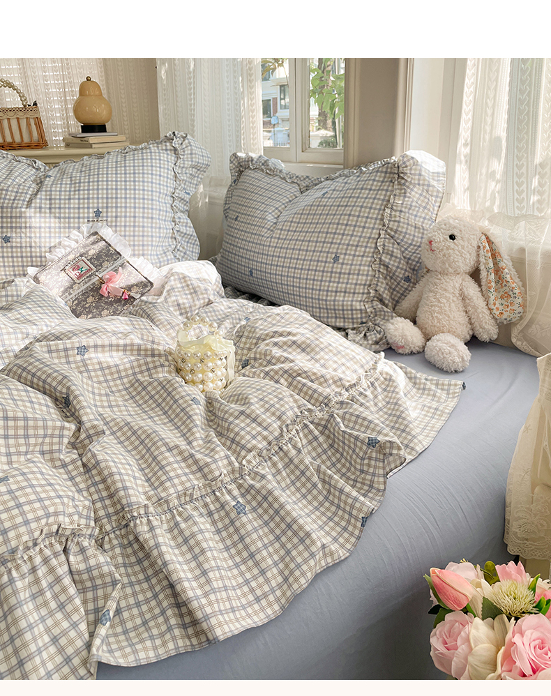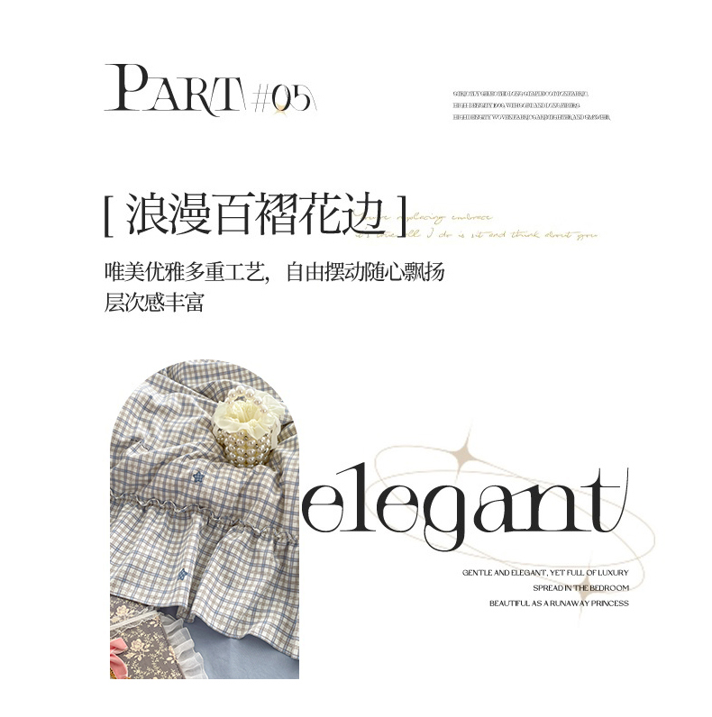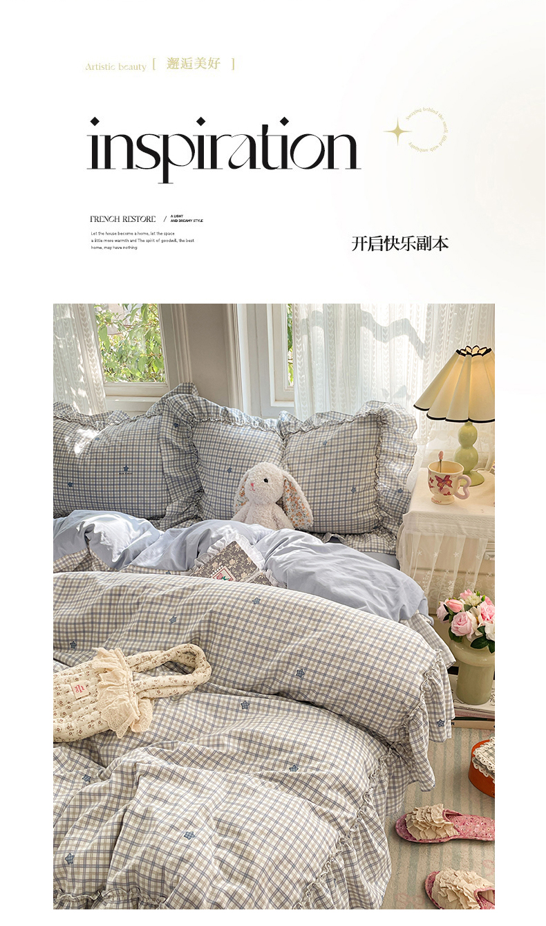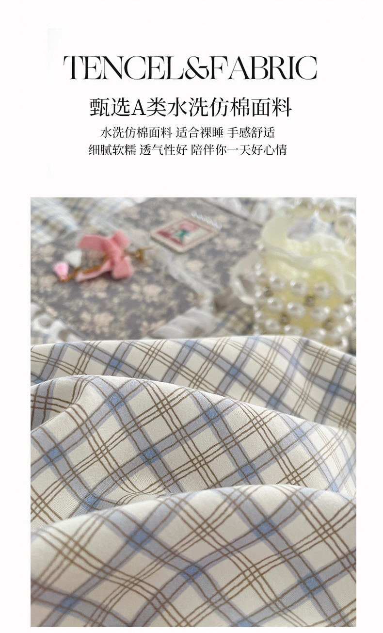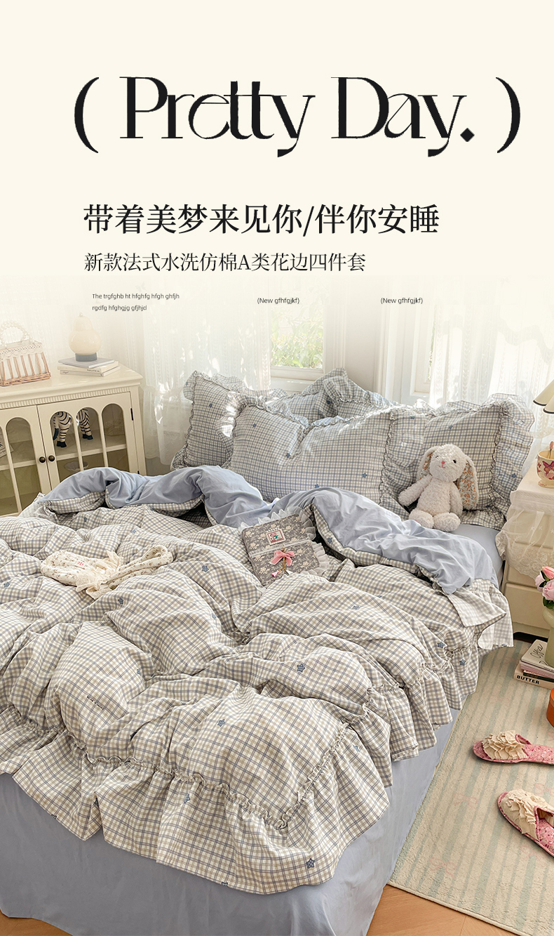 当前位置: 91家纺网 > 商品网购 > 床品套件 > 四件套 > 其它四件套 > 优尚佳生活馆 2026新款A类仿棉水洗法式工艺花边四件套 格纹河畔