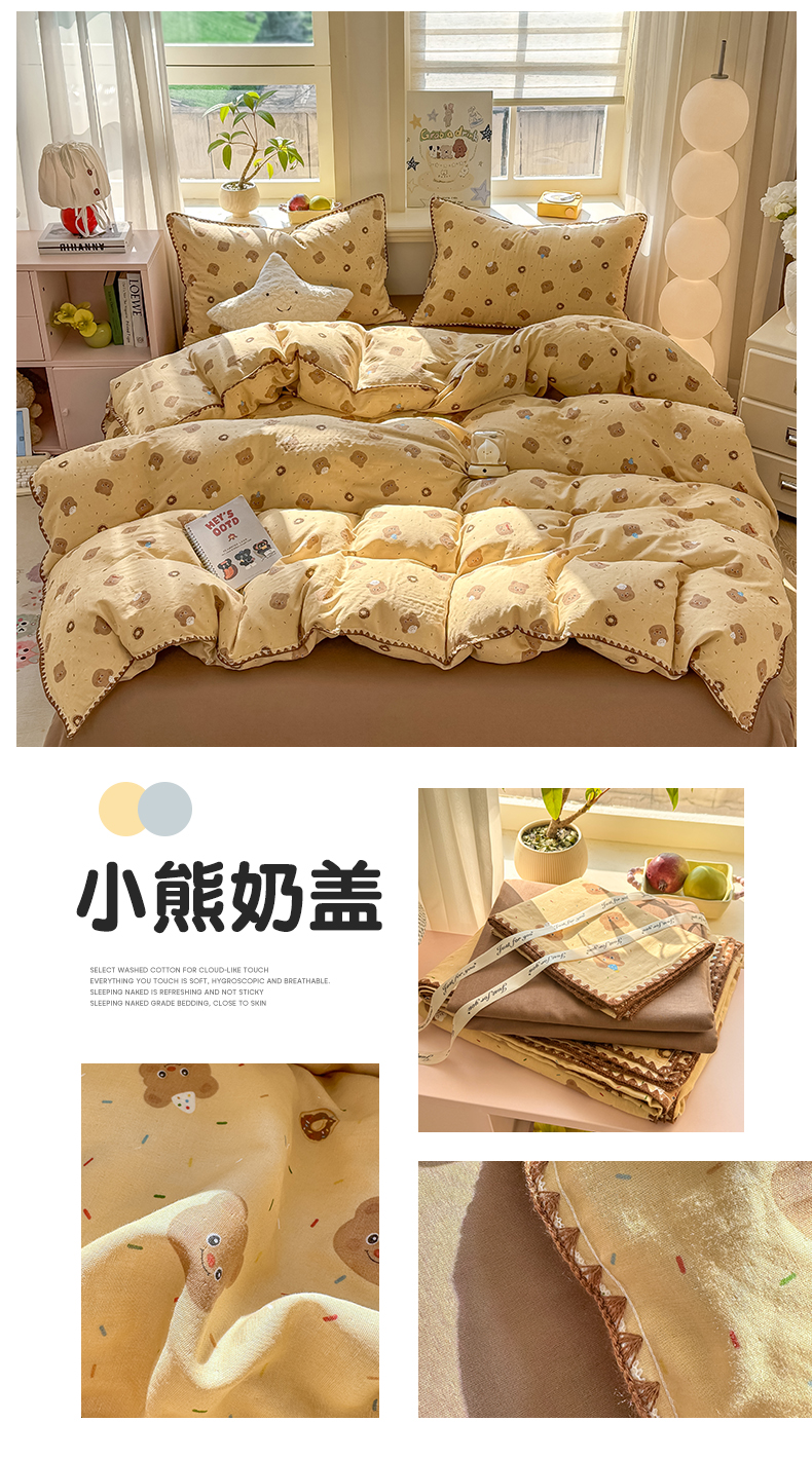 (总)对白 2026新款全棉纯棉色织水洗棉四件套-极简格子冰川孤岛系列,冰川小岛,海上孤岛