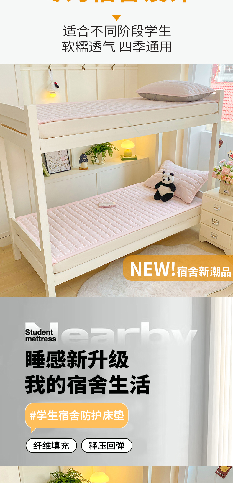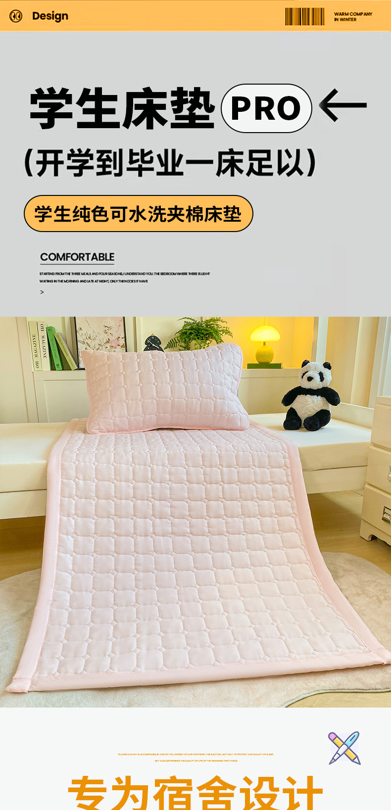 (总)麒东家纺 2026新款学生纯色水洗棉夹棉床垫系列