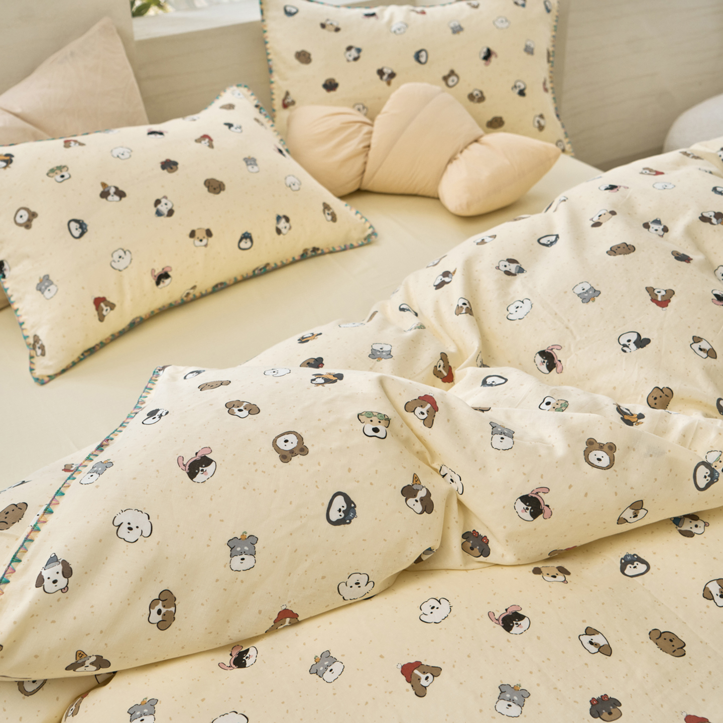 洋铭区(原狠狠爱) 2026新款春季全棉彩边双层纱四件套 波斯小懒狗