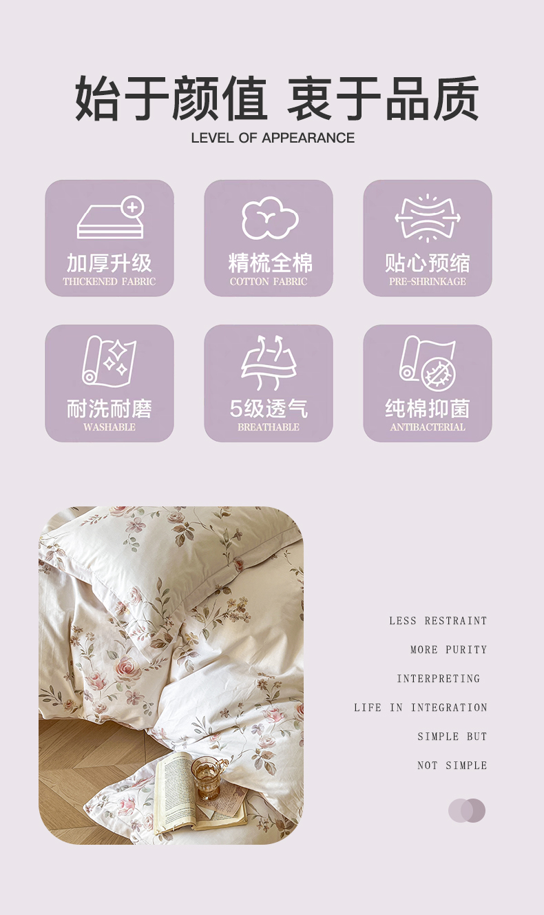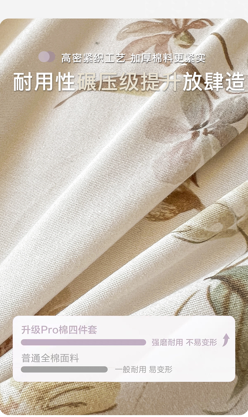 商品名称:典曼家纺 2026新款纯棉花卉系列全棉印花四件套 清悠-粉