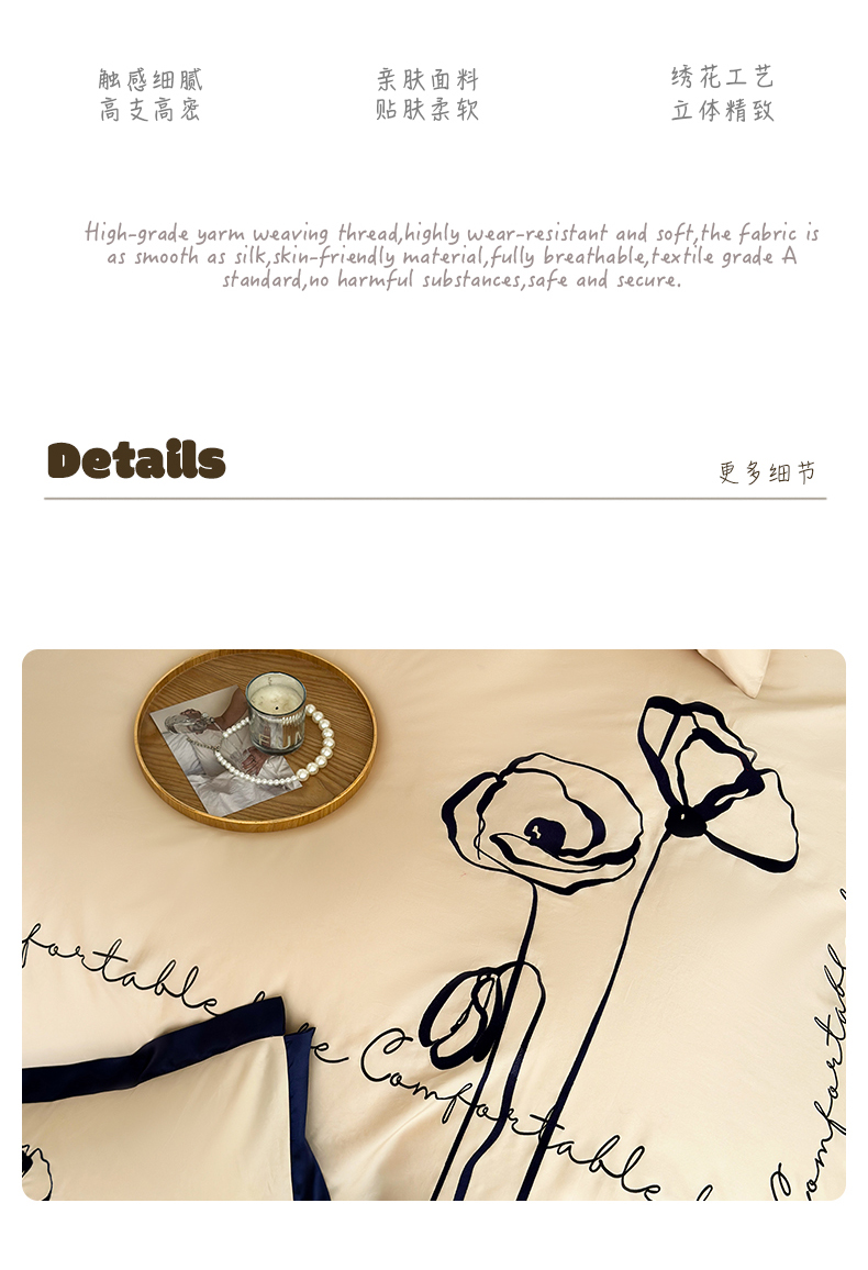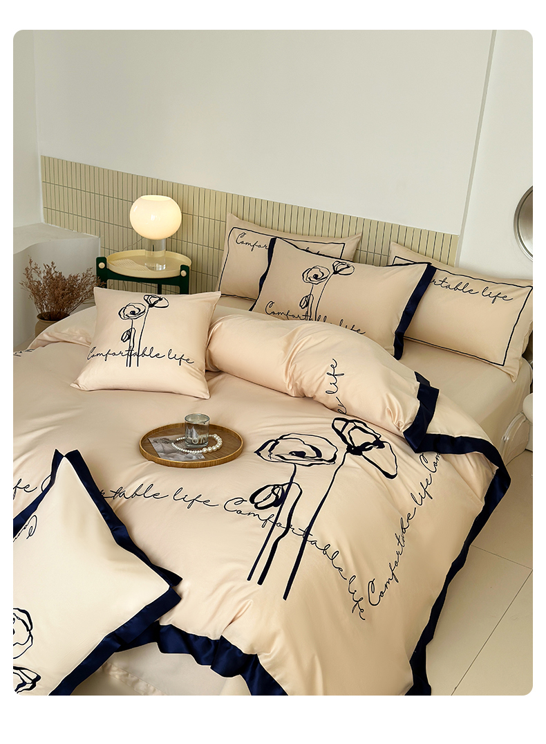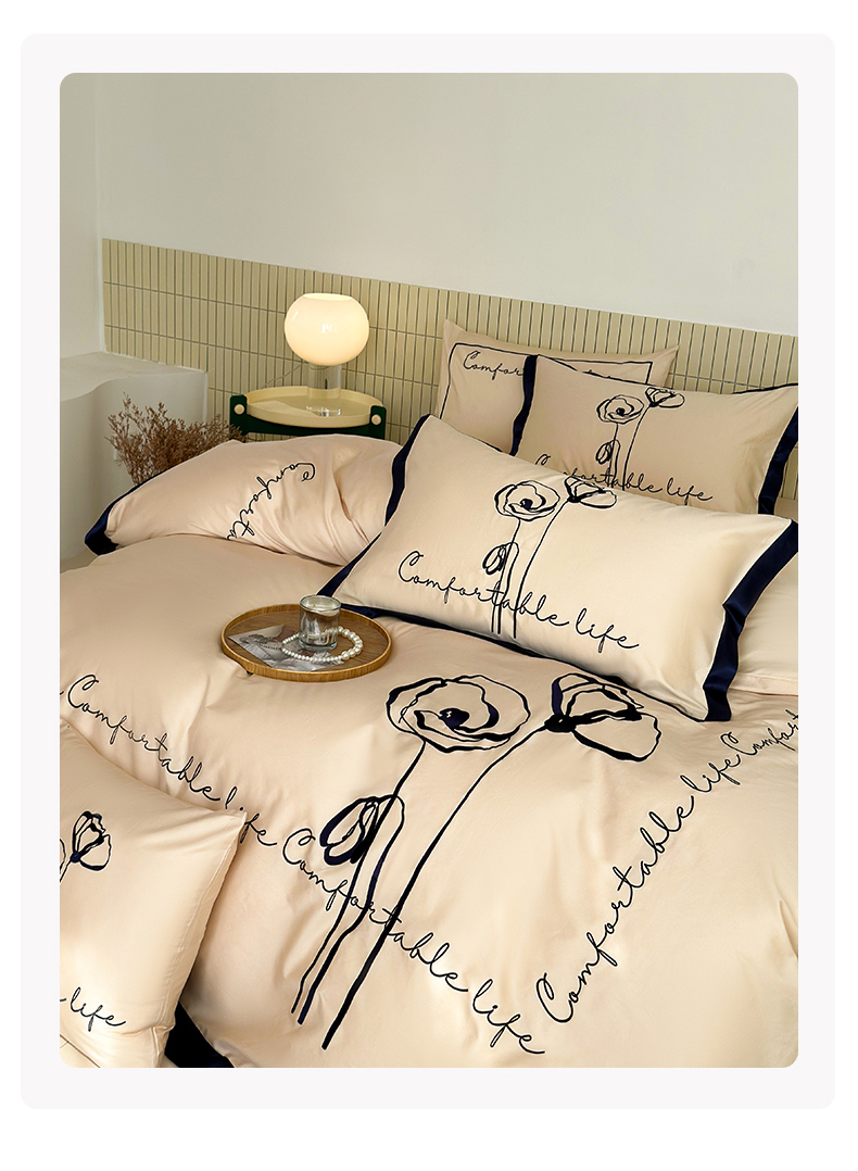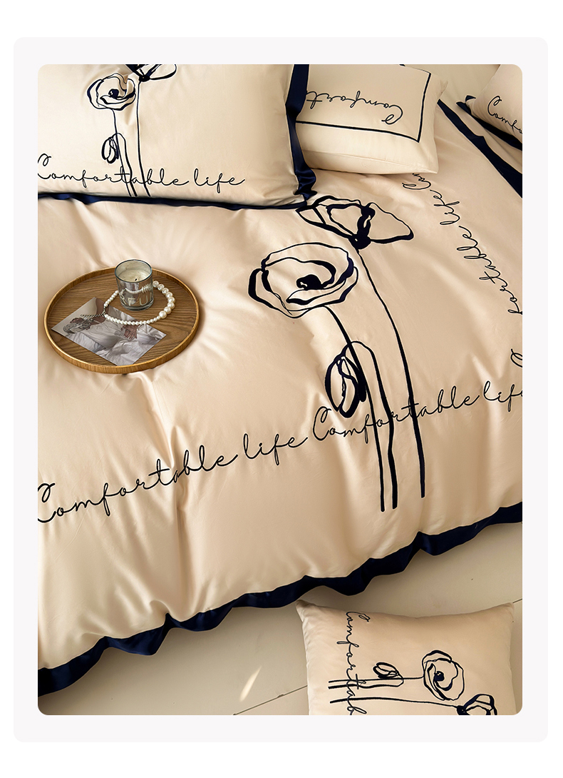 商品名称:波比可可 2026新款50s长绒棉纯棉全棉居家轻奢刺绣四件套 花卉