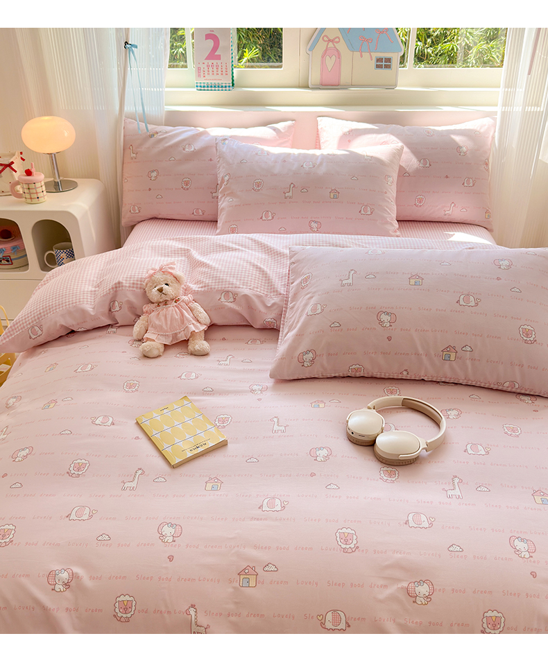 商品名称:梵克保罗 2026春夏新款ins小清新40支全棉13372四件套学生三件套单被套单枕套系列-第三批(四件套) 小象之家-粉
