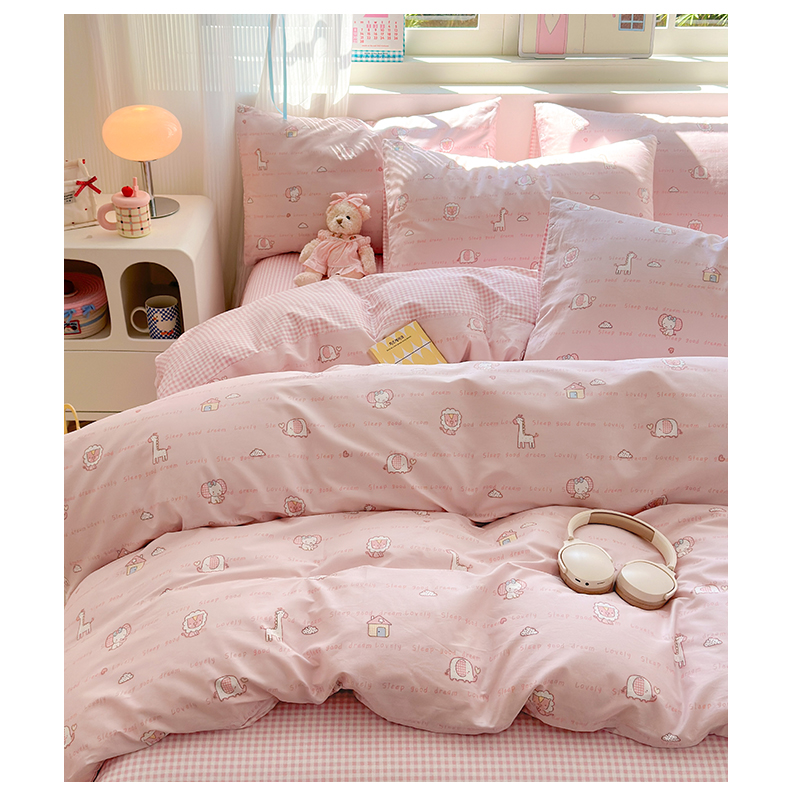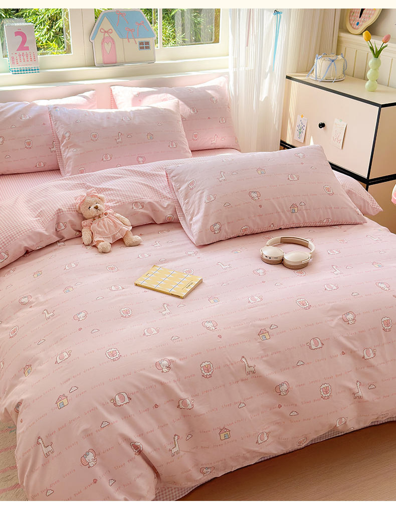 商品名称:梵克保罗 2026春夏新款ins小清新40支全棉13372四件套学生三件套单被套单枕套系列-第三批(单被套) 小象之家-粉