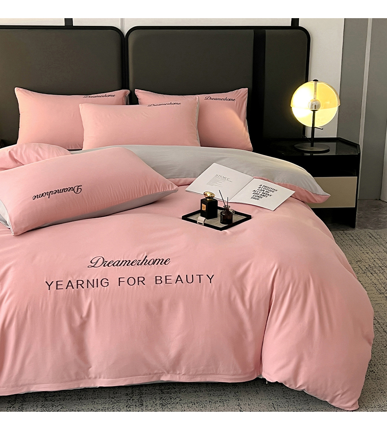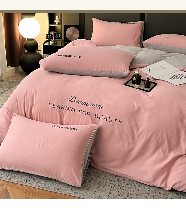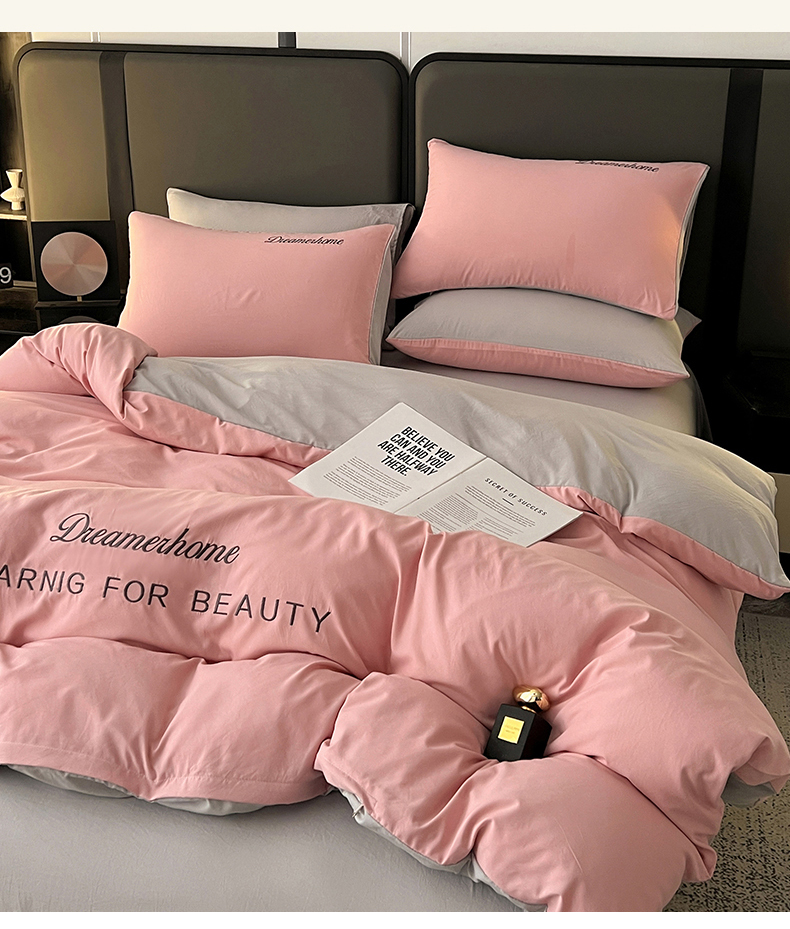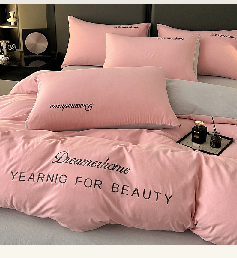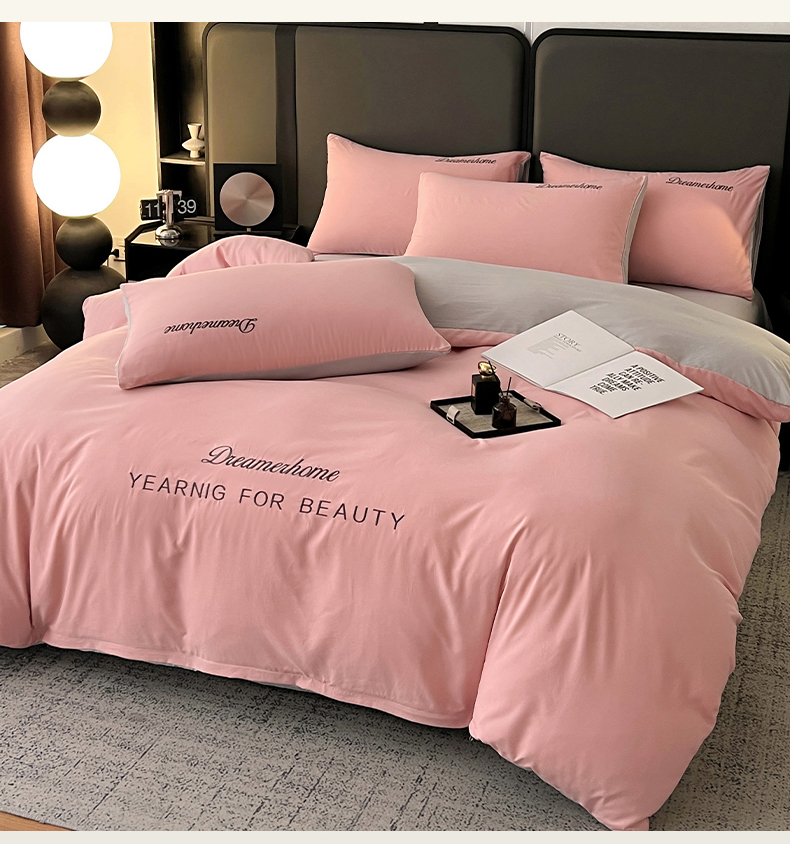 当前位置: 91家纺网 > 商品网购 > 床品套件 > 四件套 > 水洗棉四件套 > 鑫利来家纺 2026新款水洗云朵棉刺绣四件套纯色双拼水洗磨毛简约字母刺绣四件套 慕斯-豆沙+山灰