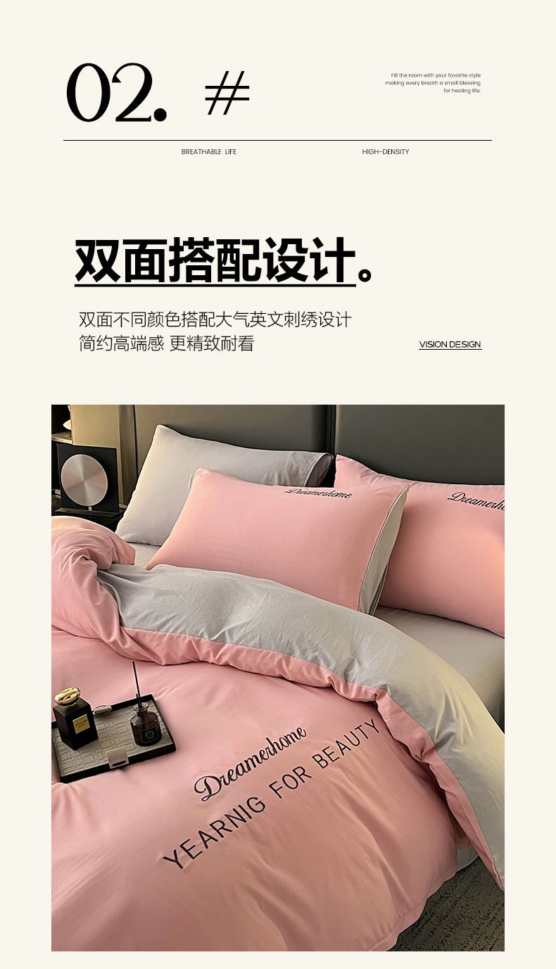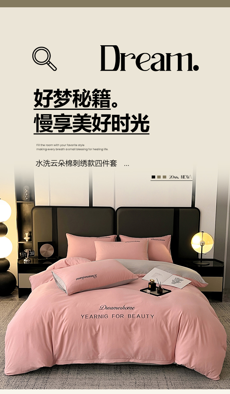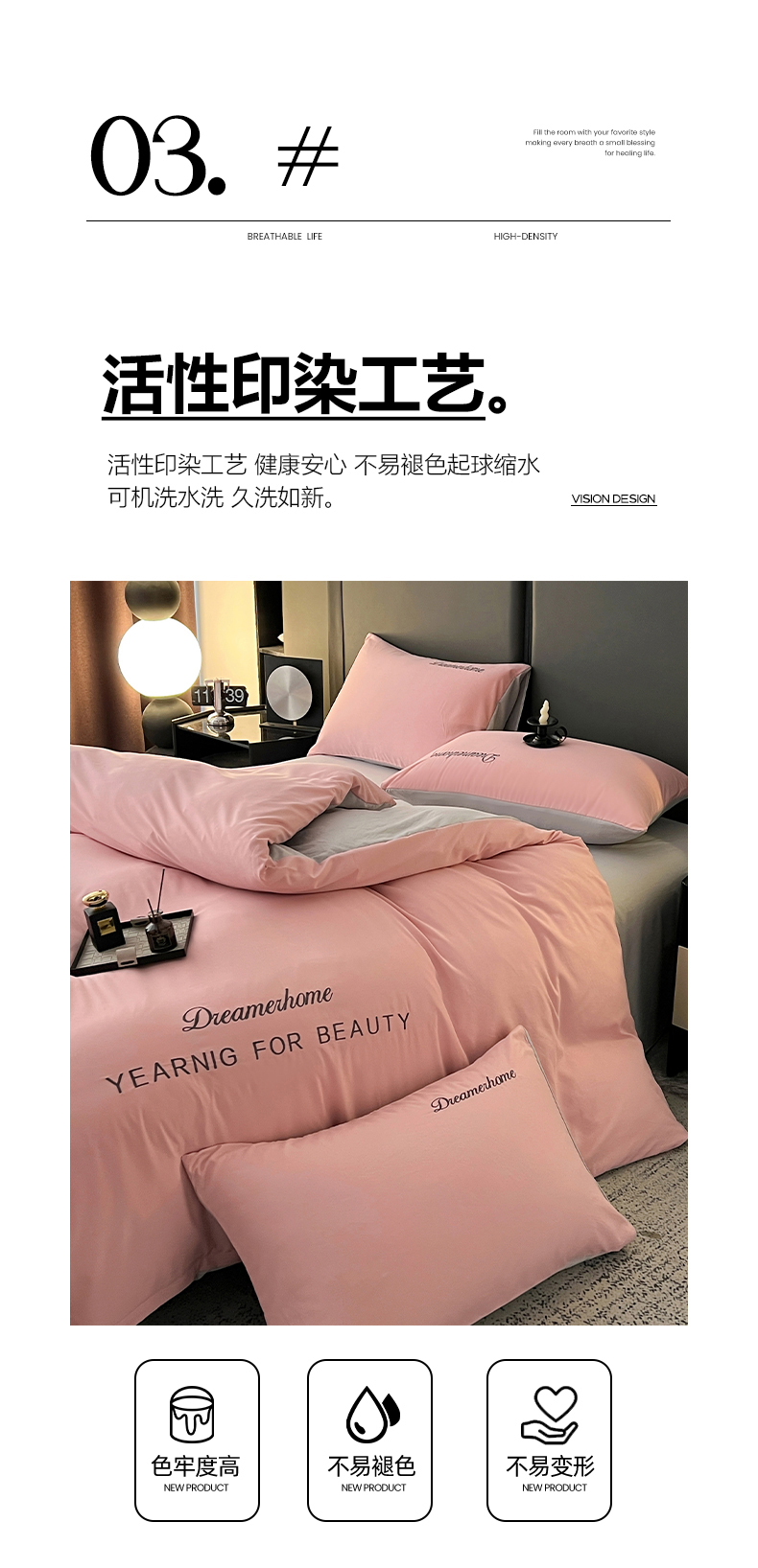 当前位置: 91家纺网 > 商品网购 > 床品套件 > 四件套 > 水洗棉四件套 > 鑫利来家纺 2026新款水洗云朵棉刺绣四件套纯色双拼水洗磨毛简约字母刺绣四件套 慕斯-豆沙+山灰
