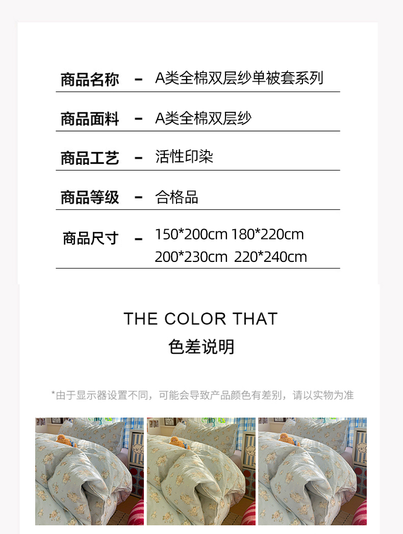 • 91家纺网 家纺一手货源 找家纺 焱博家纺 2026新款A类全棉双层纱系列单被套 春野苍兰