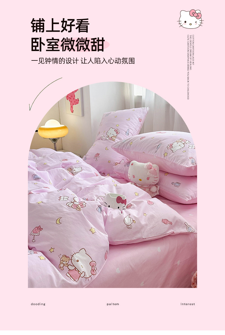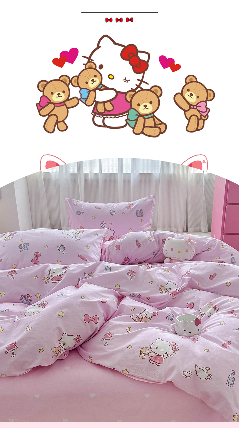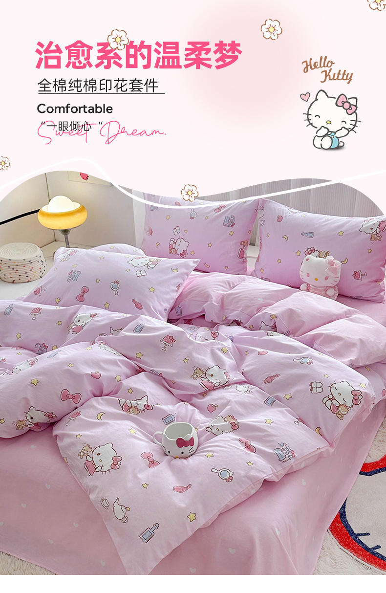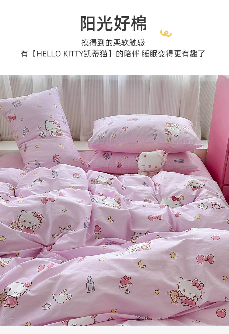 当前位置: 91家纺网 > 商品网购 > 床品套件 > 四件套 > 全棉普通四件套 > 玉元坊 2026新款正版授权三丽鸥系列全棉纯棉床单四件套学生三件套-凯蒂猫系列 美美凯蒂【简约款】