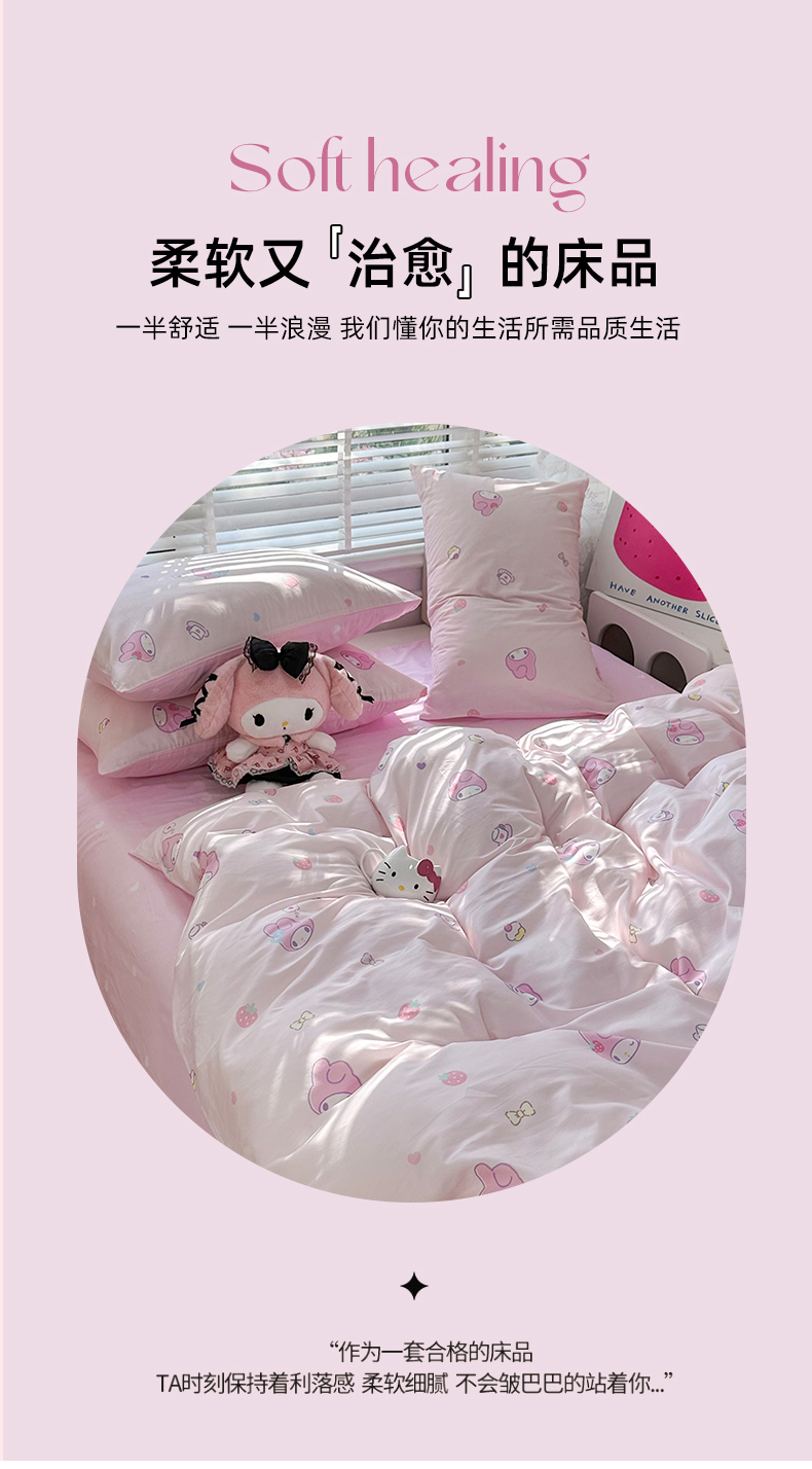 当前位置: 91家纺网 > 商品网购 > 床品套件 > 四件套 > 全棉普通四件套 > 玉元坊 2026新款正版授权三丽鸥系列全棉纯棉床单四件套学生三件套-美乐蒂系列 可可美乐蒂【简约款】