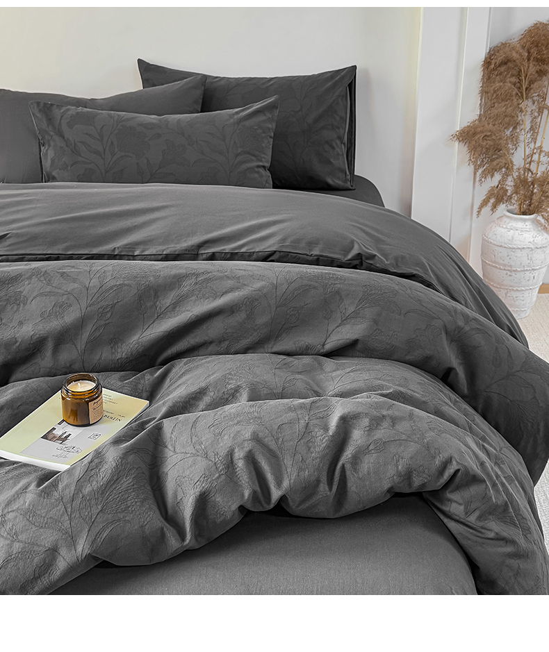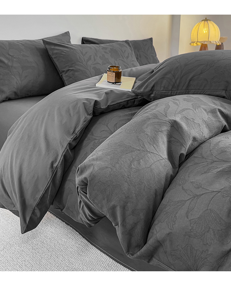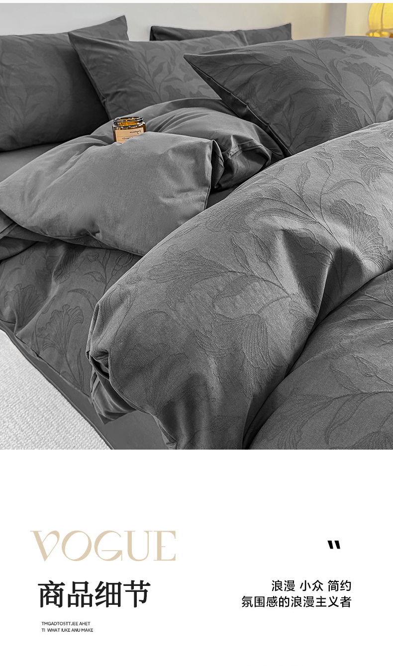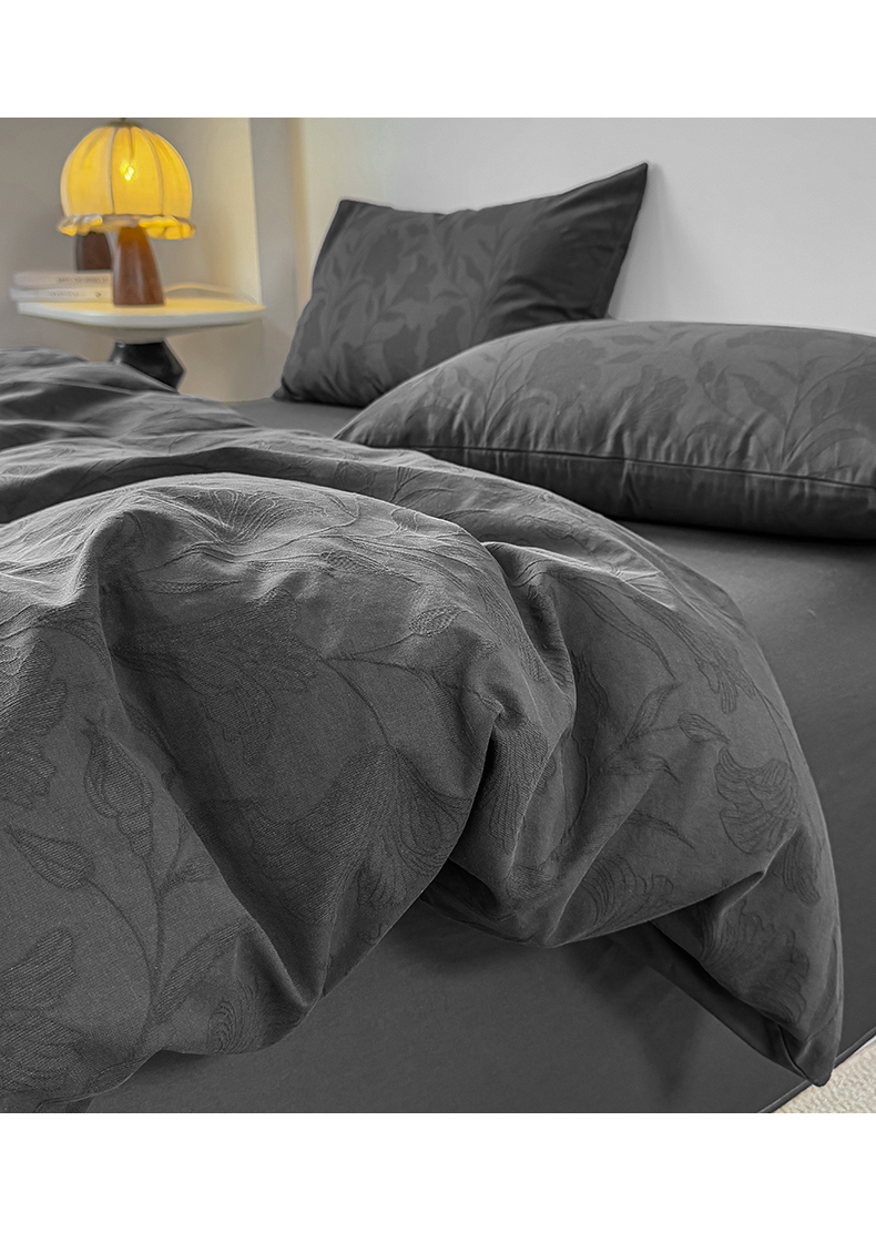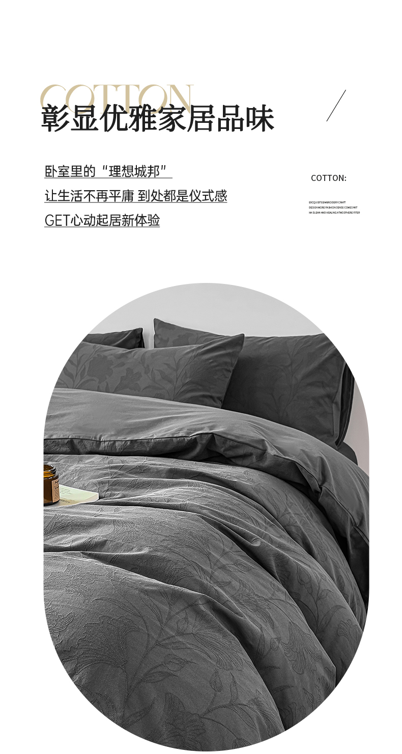 当前位置: 91家纺网 > 商品网购 > 床品套件 > 四件套 > 全棉普通四件套 > 灰鲸 2026新款全棉纯棉厚织三层水洗色织提花四件套 芳菲-素墨