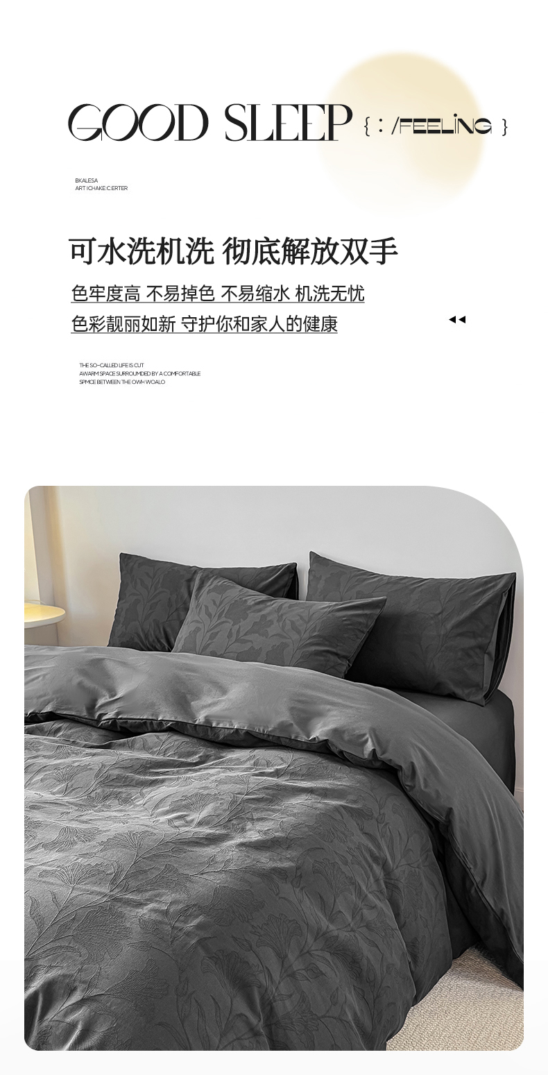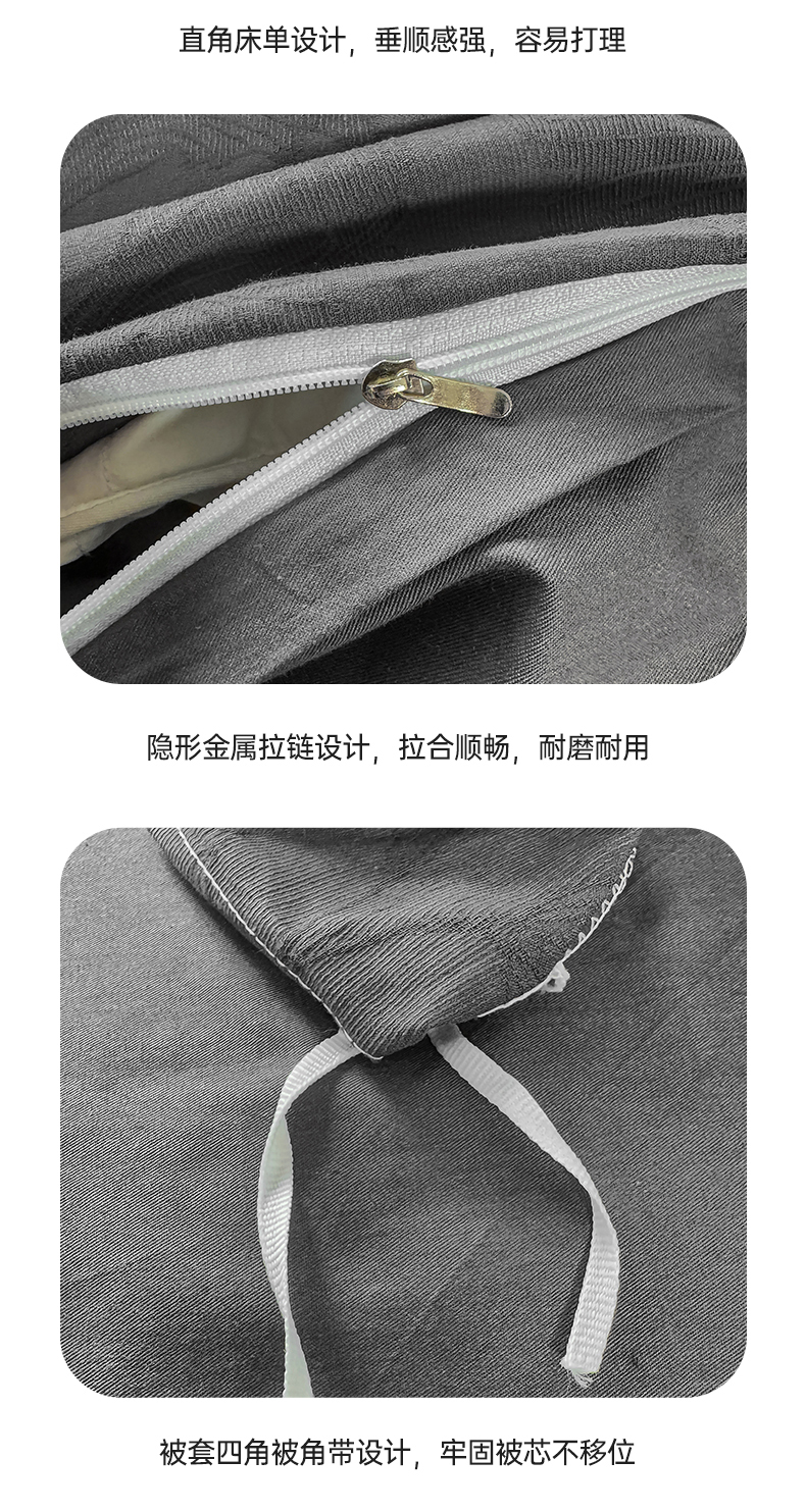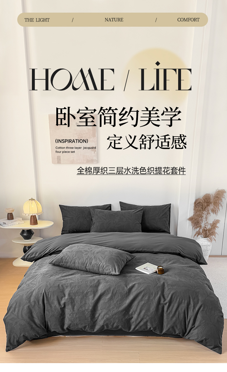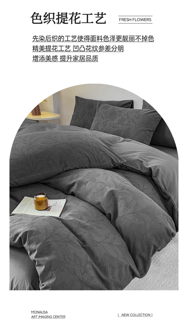 当前位置: 91家纺网 > 商品网购 > 床品套件 > 四件套 > 全棉普通四件套 > 灰鲸 2026新款全棉纯棉厚织三层水洗色织提花四件套 芳菲-素墨