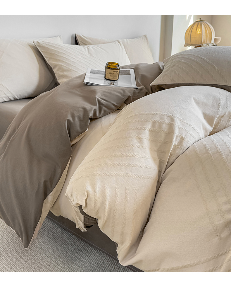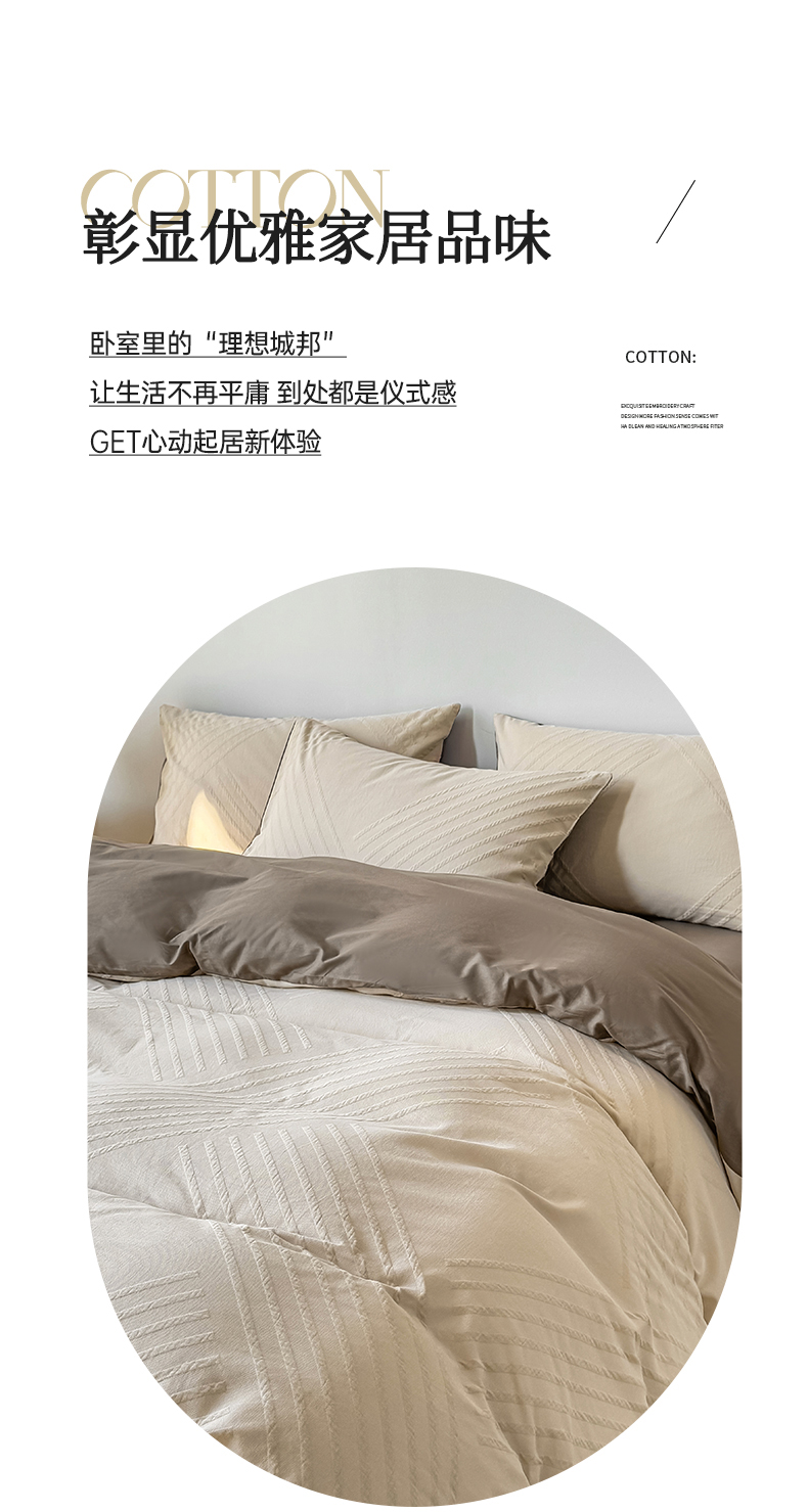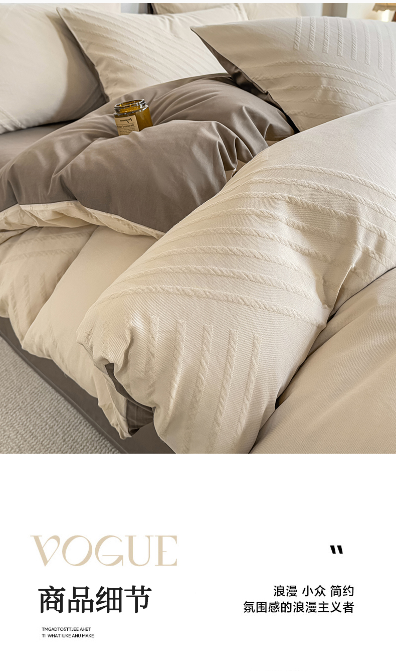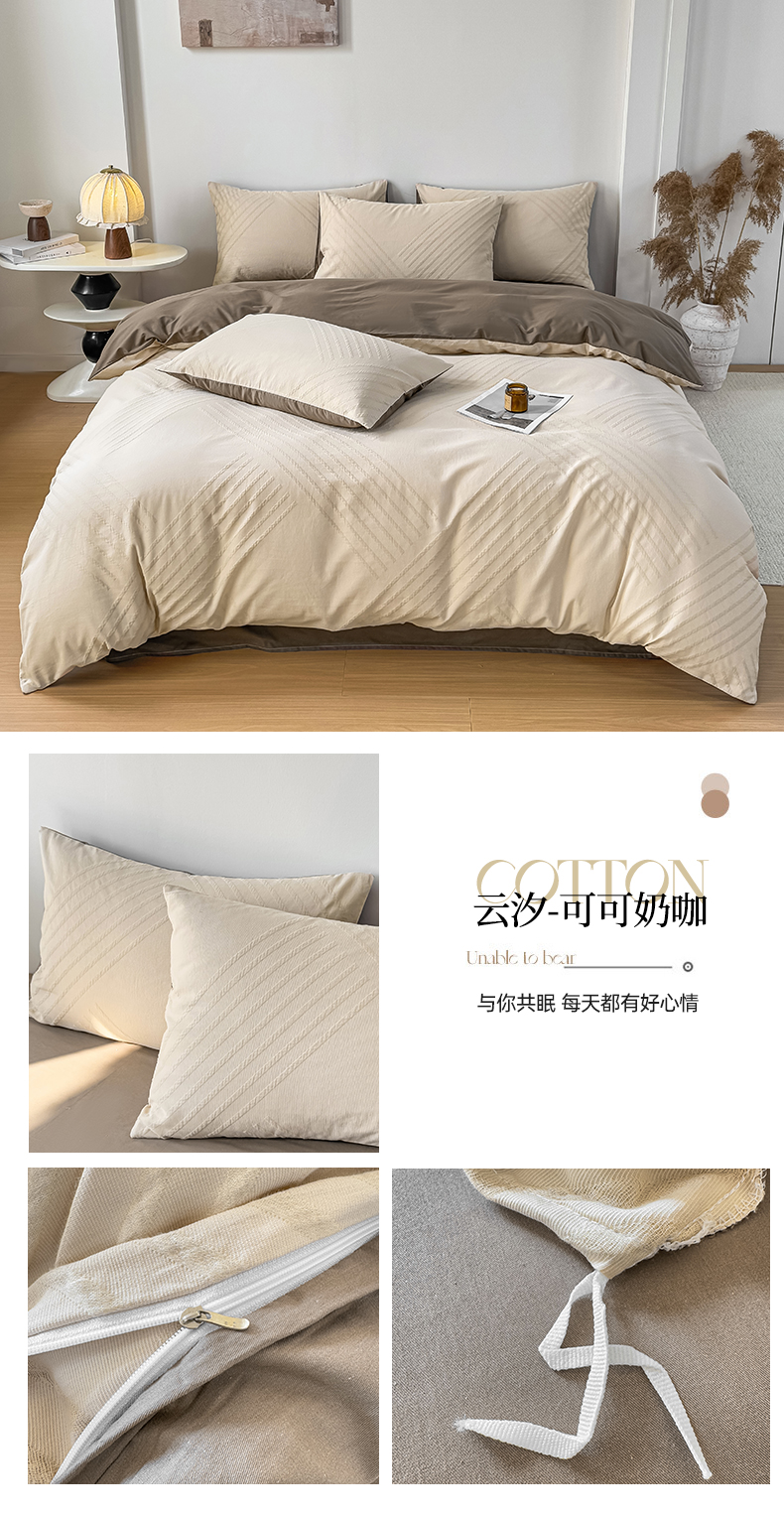当前位置: 91家纺网 > 商品网购 > 床品套件 > 四件套 > 全棉普通四件套 > 灰鲸 2026新款全棉纯棉厚织三层水洗色织提花四件套 云汐-可可奶咖