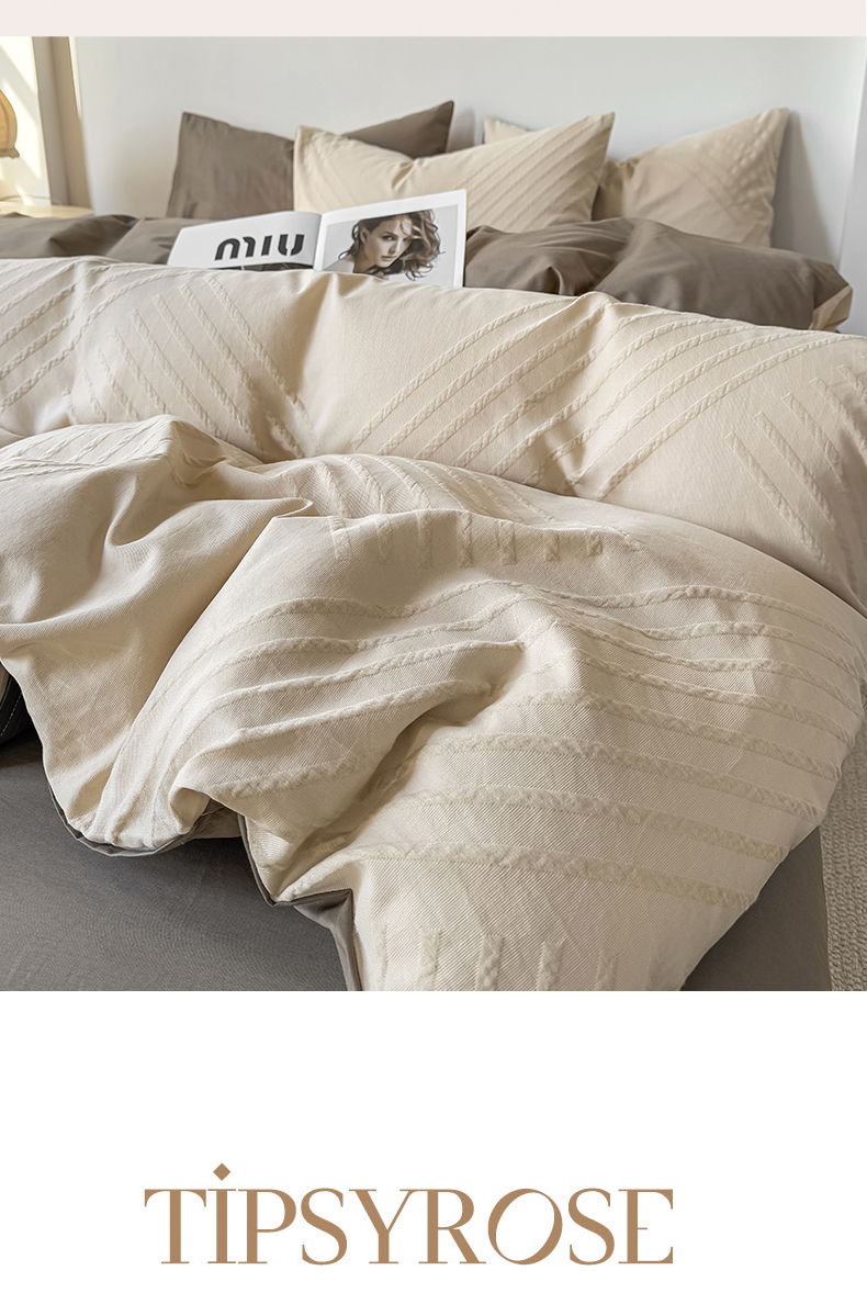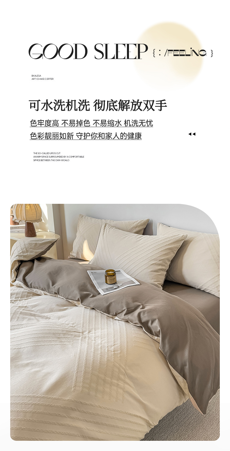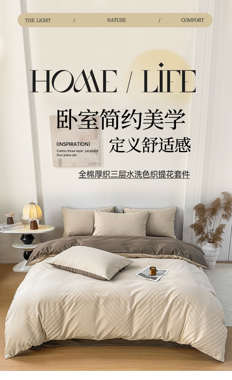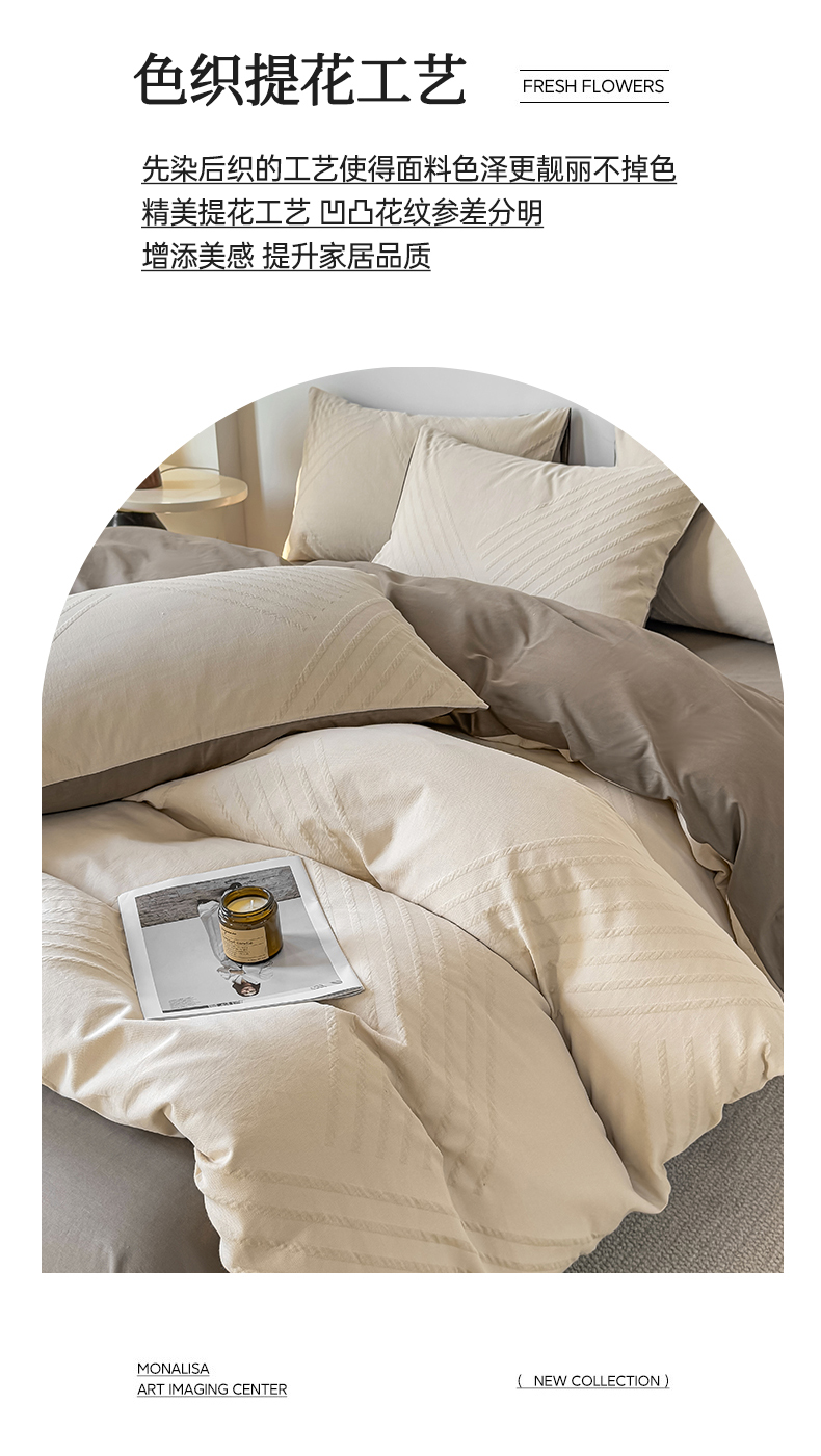 当前位置: 91家纺网 > 商品网购 > 床品套件 > 四件套 > 全棉普通四件套 > 灰鲸 2026新款全棉纯棉厚织三层水洗色织提花四件套 云汐-可可奶咖