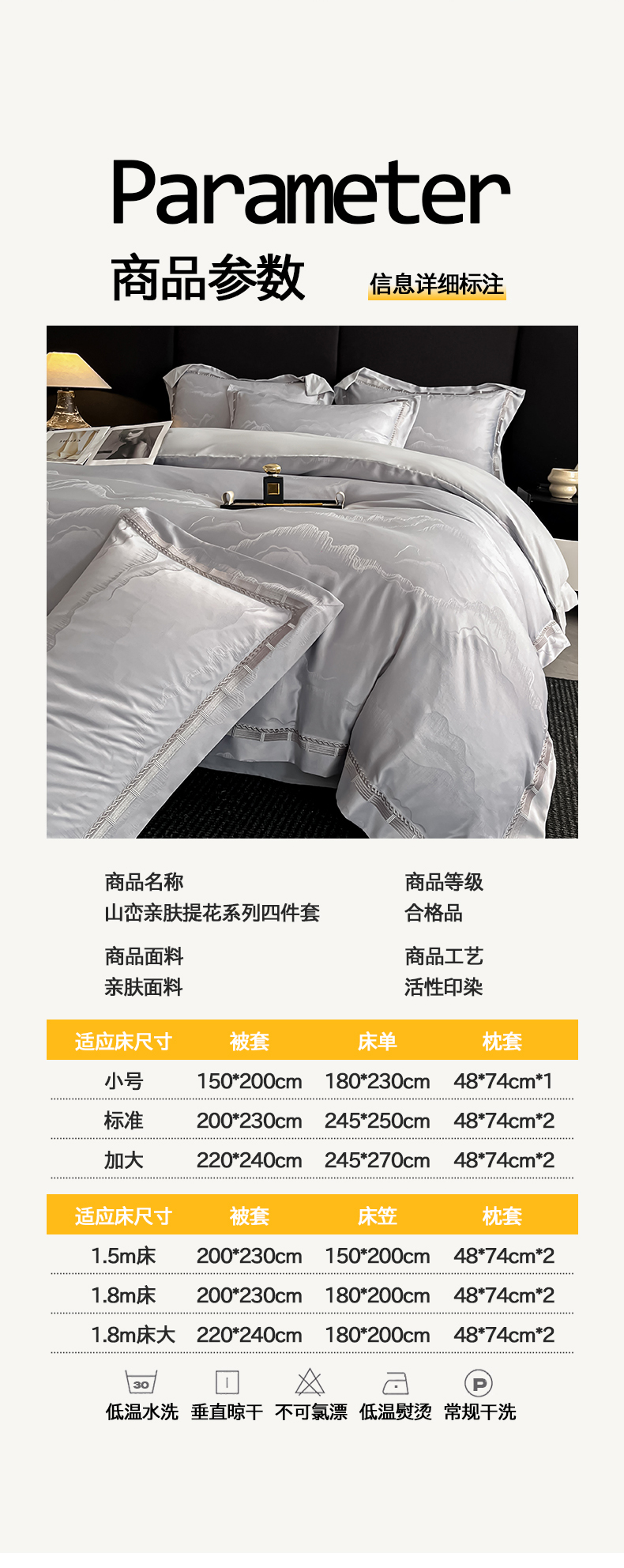 当前位置: 91家纺网 > 商品网购 > 床品套件 > 四件套 > 其它四件套 > 置顶家纺 2026春夏新款亲肤提花四件套-山峦 山峦-高级灰