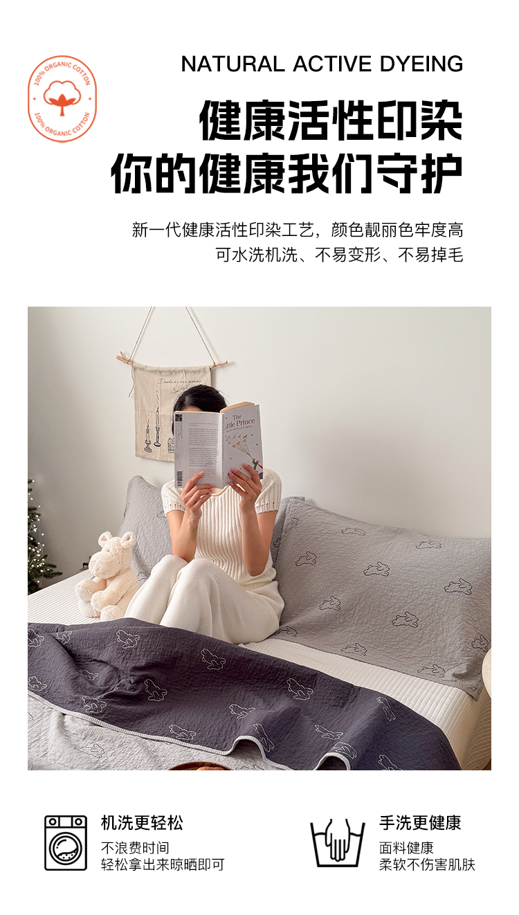 (总)沐瑟家纺 2026新款全棉四层纱布床盖-星星和心情系列,心情-粉色,心情-灰蓝,心情-卡其,星星-黄色,星星-灰色,星星-蓝色,星星-紫色,组合