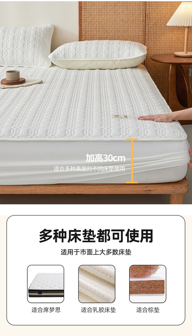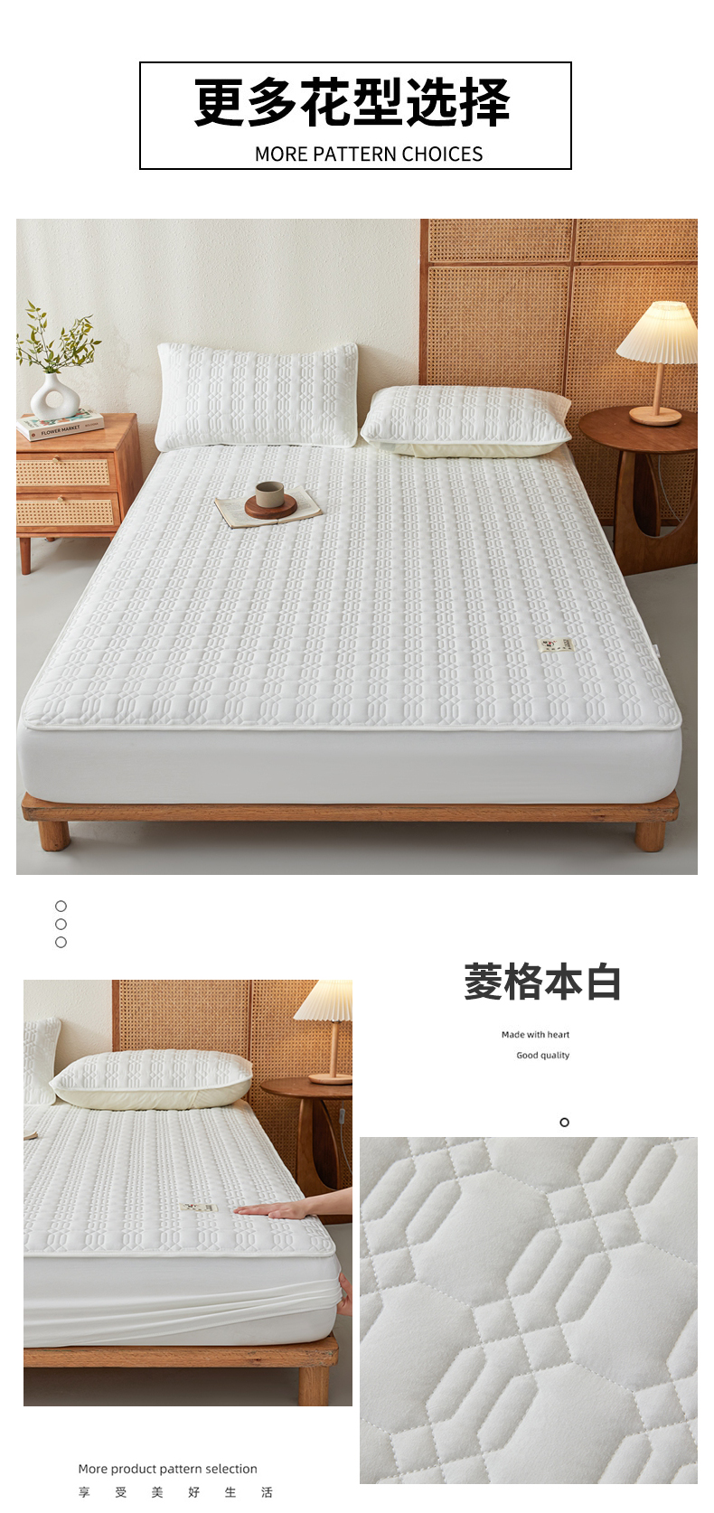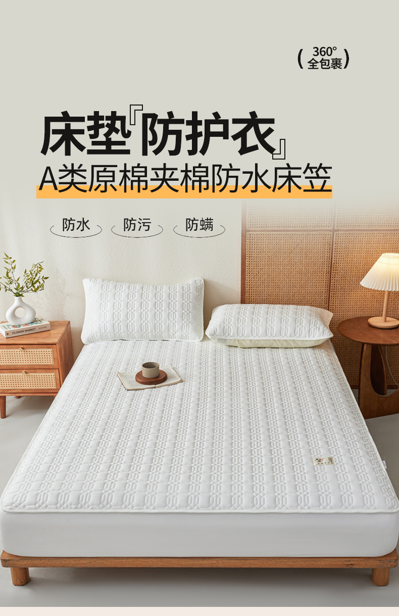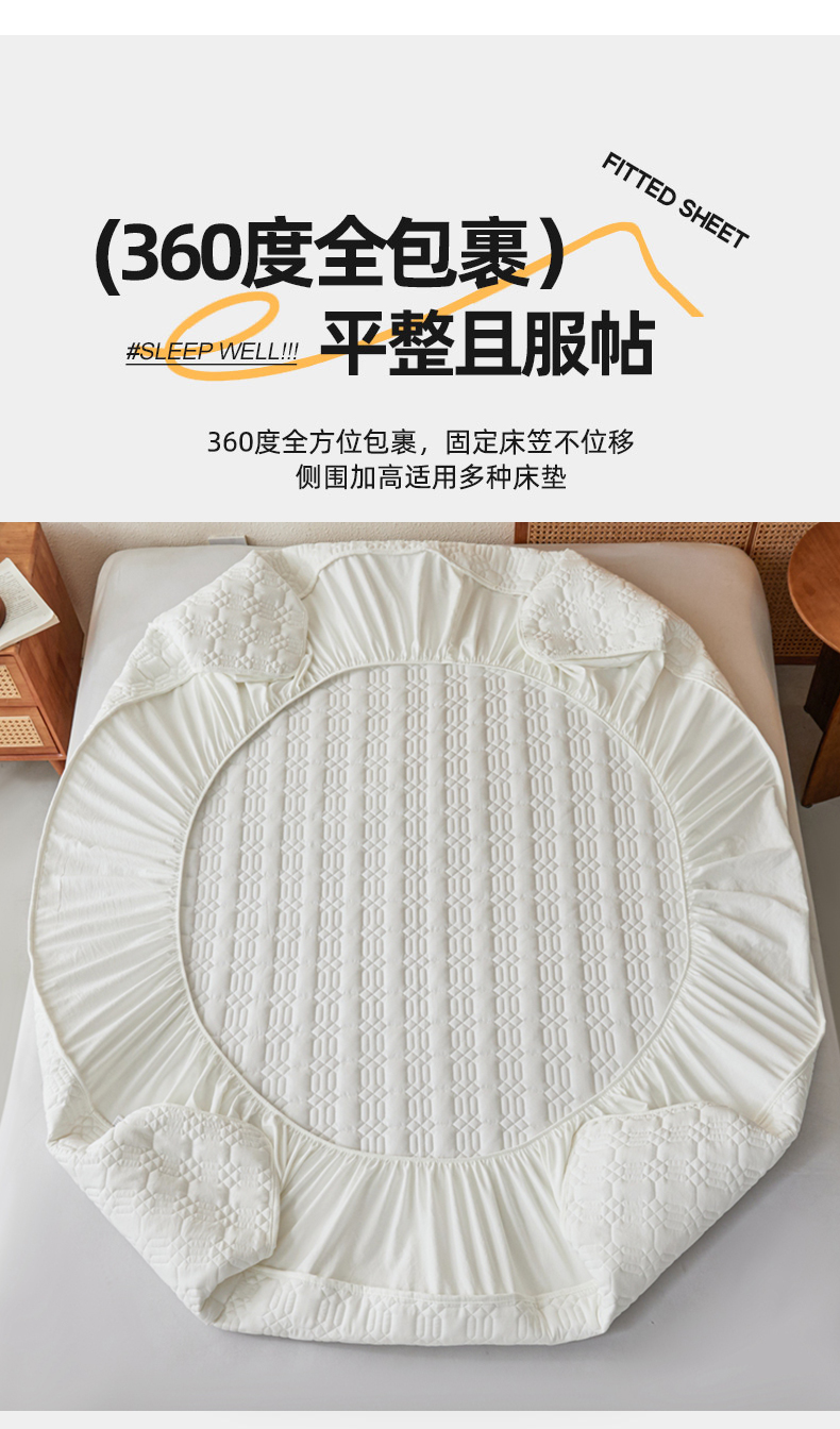 邵依家纺 2026新款原棉防水床笠系列 菱格本白