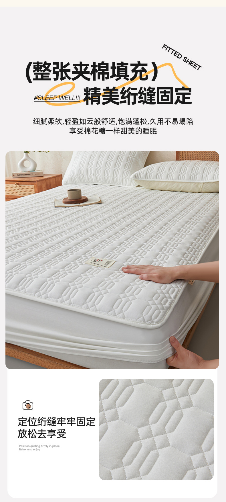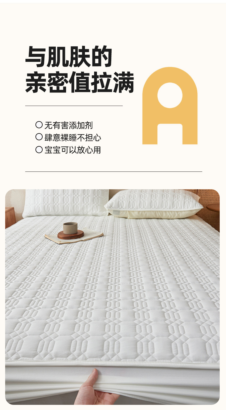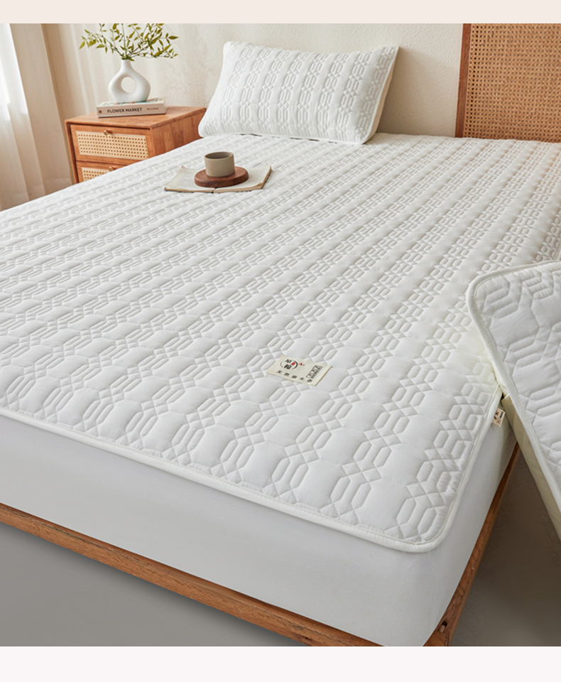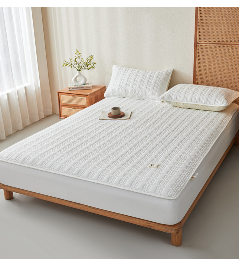 邵依家纺 2026新款原棉防水床笠系列 菱格本白