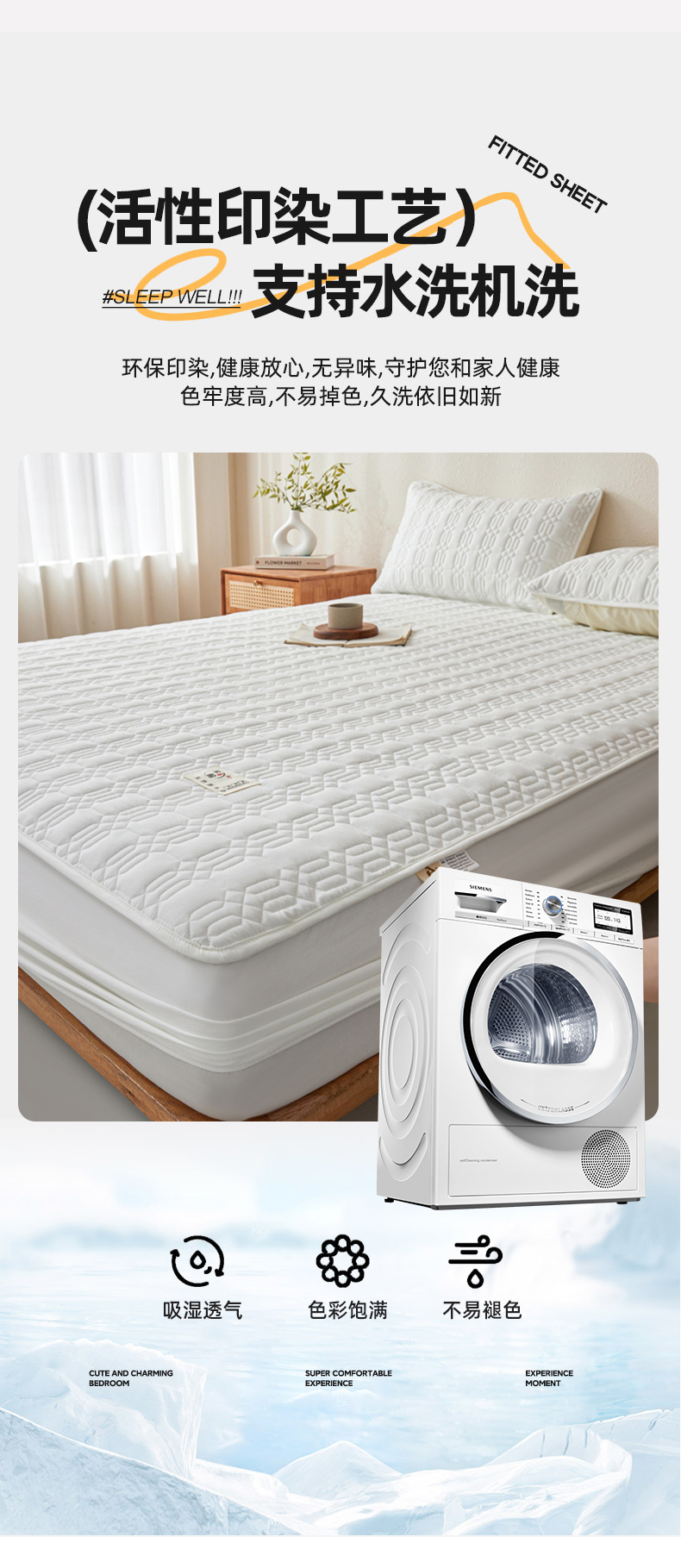 • 91家纺网 家纺一手货源 找家纺 邵依家纺 2026新款原棉防水床笠系列 菱格本白