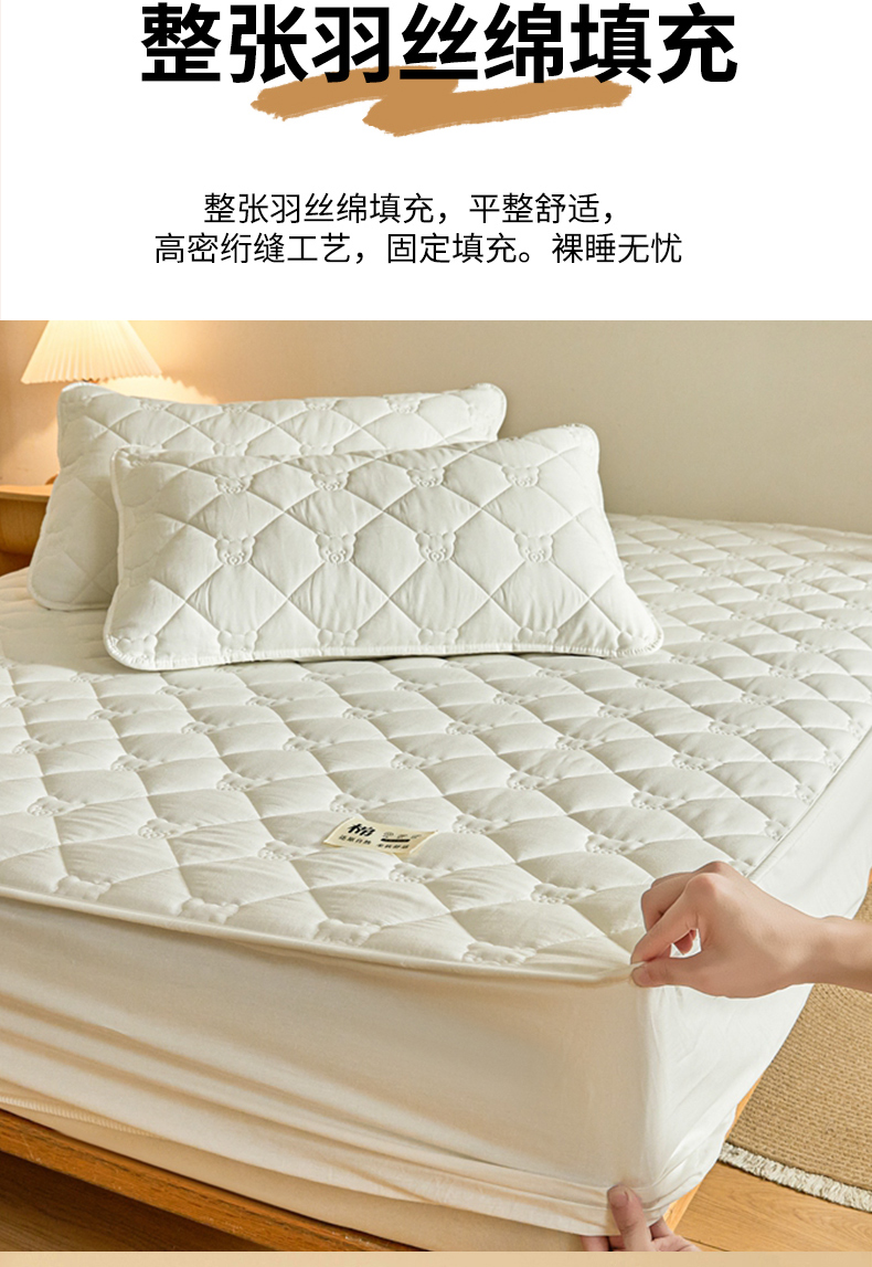 • 91家纺网 家纺一手货源 找家纺 邵依家纺 2026新款A类加厚纯棉夹棉全棉床笠13372提供买家秀 小熊-珍珠白