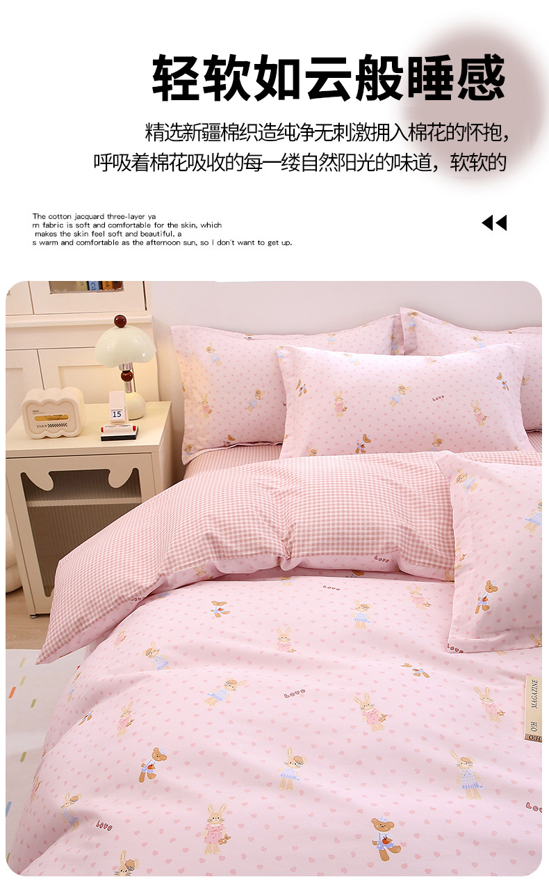 织写 2026新款A类单件被套 单被套全棉纯棉 12868 预留缩水尺寸 童趣多多-粉