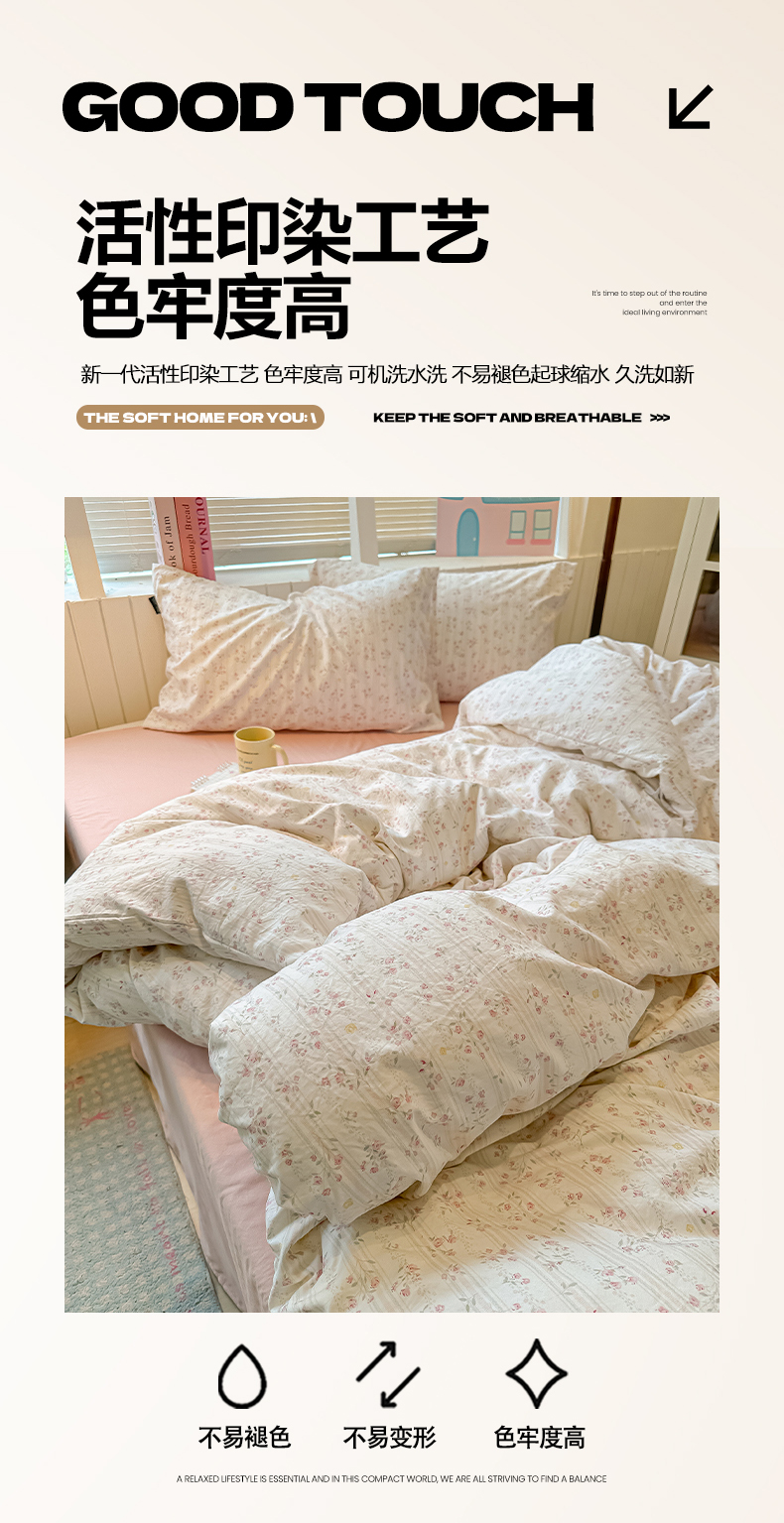 当前位置: 91家纺网 > 商品网购 > 床品套件 > 四件套 > 其它四件套 > 多乐家纺 2026新款秋冬韩系花卉舒柔棉印花四件套 秘境