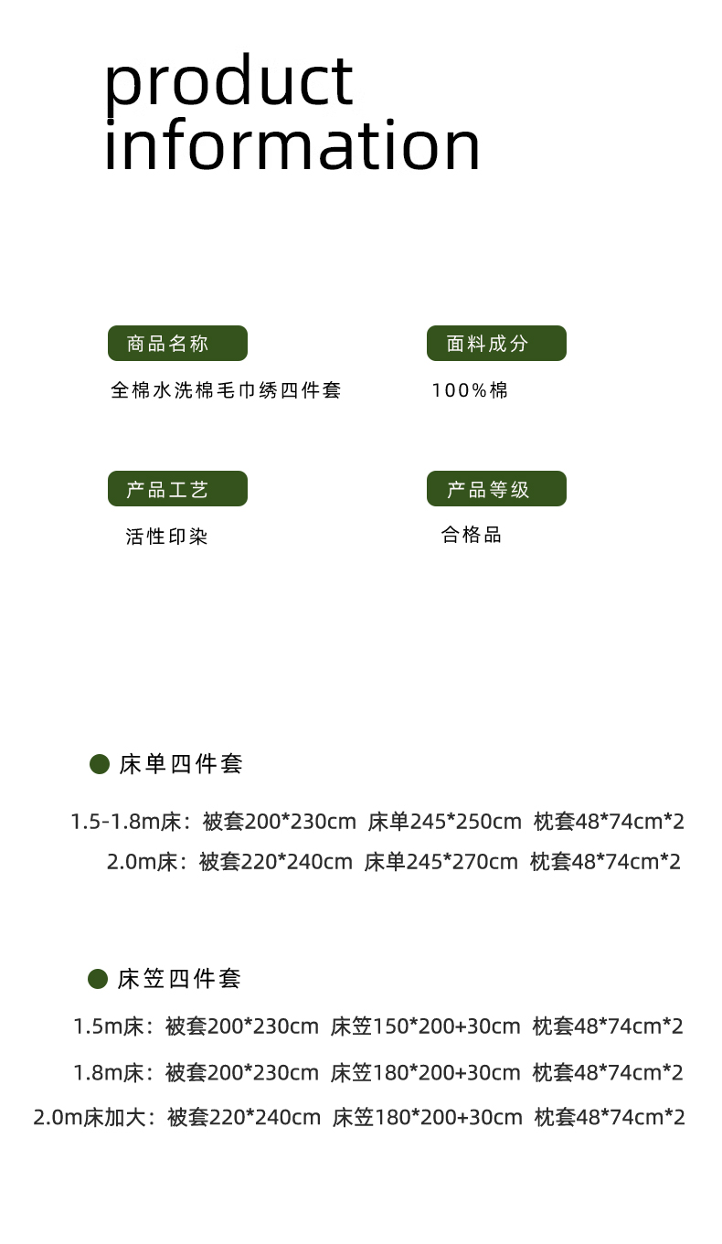 [{"sp_id":11,"sp_name":"\u989c\u8272","sp_format":2,"sp_list":[{"sp_value_id":1662,"sp_value_name":"\u82b1\u7d6e-\u5fae\u5fae\u7d2b","sp_value_image":{"id":999,"path":"https:\/\/img3.91jf.com\/ghelp\/2026\/20260126\/20260126091553_947876.jpg"},"sp_value_video":{"id":0,"img":"","path":"","time":0,"download_num":0,"play_num":0},"price":"230.00","storage":3000,"weight":"2.600","is_check_weight":0,"plus_price":"","sp_sort":0},{"sp_value_id":1663,"sp_value_name":"\u82b1\u7d6e-\u674f\u4ec1\u767d","sp_value_image":{"id":999,"path":"https:\/\/img3.91jf.com\/ghelp\/2026\/20260126\/20260126091553_856935.jpg"},"sp_value_video":{"id":0,"img":"","path":"","time":0,"download_num":0,"play_num":0},"price":"230.00","storage":3000,"weight":"2.600","is_check_weight":0,"plus_price":"","sp_sort":0},{"sp_value_id":1664,"sp_value_name":"\u82b1\u76cf-\u5976\u5496","sp_value_image":{"id":999,"path":"https:\/\/img3.91jf.com\/ghelp\/2026\/20260126\/20260126091554_477019.jpg"},"sp_value_video":{"id":0,"img":"","path":"","time":0,"download_num":0,"play_num":0},"price":"230.00","storage":3000,"weight":"2.600","is_check_weight":0,"plus_price":"","sp_sort":0},{"sp_value_id":1665,"sp_value_name":"\u82b1\u76cf-\u674f\u4ec1\u767d","sp_value_image":{"id":999,"path":"https:\/\/img3.91jf.com\/ghelp\/2026\/20260126\/20260126091553_934472.jpg"},"sp_value_video":{"id":0,"img":"","path":"","time":0,"download_num":0,"play_num":0},"price":"230.00","storage":3000,"weight":"2.600","is_check_weight":0,"plus_price":"","sp_sort":0},{"sp_value_id":1666,"sp_value_name":"\u58a8\u67d3-\u5fae\u5fae\u7d2b","sp_value_image":{"id":999,"path":"https:\/\/img3.91jf.com\/ghelp\/2026\/20260126\/20260126091552_835285.jpg"},"sp_value_video":{"id":0,"img":"","path":"","time":0,"download_num":0,"play_num":0},"price":"230.00","storage":3000,"weight":"2.600","is_check_weight":0,"plus_price":"","sp_sort":0},{"sp_value_id":1667,"sp_value_name":"\u58a8\u67d3-\u674f\u4ec1\u767d","sp_value_image":{"id":999,"path":"https:\/\/img3.91jf.com\/ghelp\/2026\/20260126\/20260126091554_529707.jpg"},"sp_value_video":{"id":0,"img":"","path":"","time":0,"download_num":0,"play_num":0},"price":"230.00","storage":3000,"weight":"2.600","is_check_weight":0,"plus_price":"","sp_sort":0}]},{"sp_id":10,"sp_name":"\u5c3a\u5bf8","sp_format":1,"sp_list":[{"sp_value_id":41,"sp_value_name":"1.5m\u5e8a\u5355\u6b3e\u56db\u4ef6\u5957","sp_value_image":{"id":0,"path":""},"sp_value_video":{"id":0,"img":"","path":"","time":0,"download_num":0,"play_num":0},"price":"230.00","storage":500,"weight":"2.600","is_check_weight":0,"plus_price":"","sp_sort":5},{"sp_value_id":42,"sp_value_name":"1.8m\u5e8a\u5355\u6b3e\u56db\u4ef6\u5957","sp_value_image":{"id":0,"path":""},"sp_value_video":{"id":0,"img":"","path":"","time":0,"download_num":0,"play_num":0},"price":"230.00","storage":500,"weight":"2.600","is_check_weight":0,"plus_price":"","sp_sort":6},{"sp_value_id":43,"sp_value_name":"2.0m\u5e8a\u5355\u6b3e\u56db\u4ef6\u5957","sp_value_image":{"id":0,"path":""},"sp_value_video":{"id":0,"img":"","path":"","time":0,"download_num":0,"play_num":0},"price":"248.00","storage":500,"weight":"2.800","is_check_weight":0,"plus_price":"","sp_sort":7},{"sp_value_id":44,"sp_value_name":"1.5m\u5e8a\u7b20\u6b3e\u56db\u4ef6\u5957","sp_value_image":{"id":0,"path":""},"sp_value_video":{"id":0,"img":"","path":"","time":0,"download_num":0,"play_num":0},"price":"239.00","storage":500,"weight":"2.600","is_check_weight":0,"plus_price":"","sp_sort":8},{"sp_value_id":45,"sp_value_name":"1.8m\u5e8a\u7b20\u6b3e\u56db\u4ef6\u5957","sp_value_image":{"id":0,"path":""},"sp_value_video":{"id":0,"img":"","path":"","time":0,"download_num":0,"play_num":0},"price":"239.00","storage":500,"weight":"2.600","is_check_weight":0,"plus_price":"","sp_sort":9},{"sp_value_id":736,"sp_value_name":"1.8m\u5e8a\u7b20\u6b3e\u88ab\u5957\u52a0\u5927\u56db\u4ef6\u5957","sp_value_image":{"id":0,"path":""},"sp_value_video":{"id":0,"img":"","path":"","time":0,"download_num":0,"play_num":0},"price":"257.00","storage":500,"weight":"2.800","is_check_weight":0,"plus_price":"","sp_sort":10}]}]