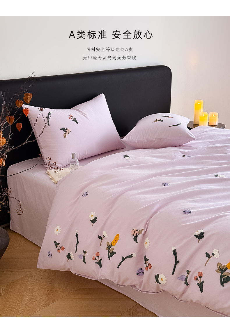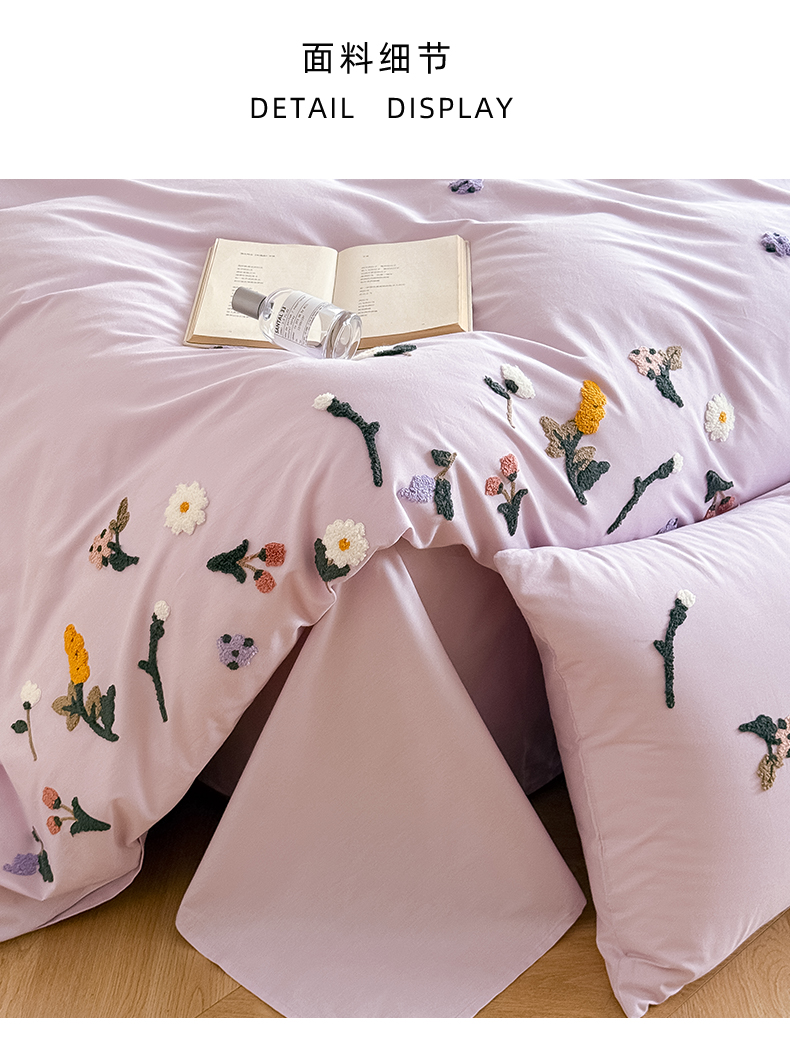 (总)Mr.pig猪先生水洗棉 2026新款全棉水洗棉毛巾绣四件套-花絮(展示价格为控价,实际价格请联系客服),花絮-微微紫,花絮-杏仁白