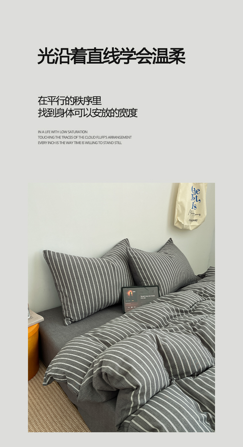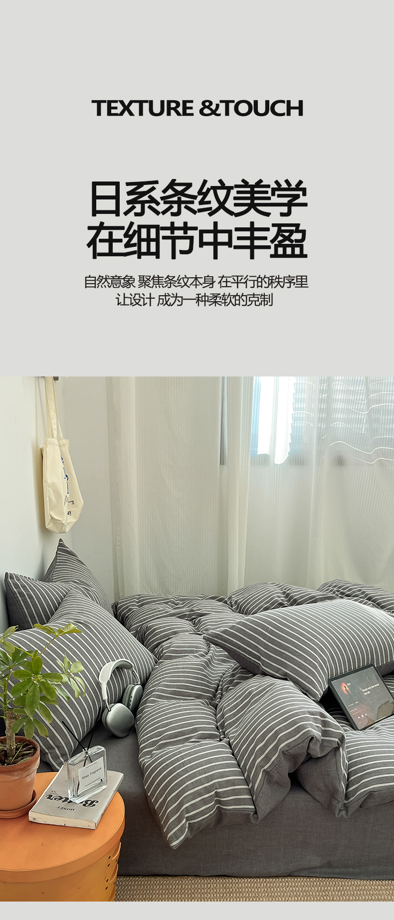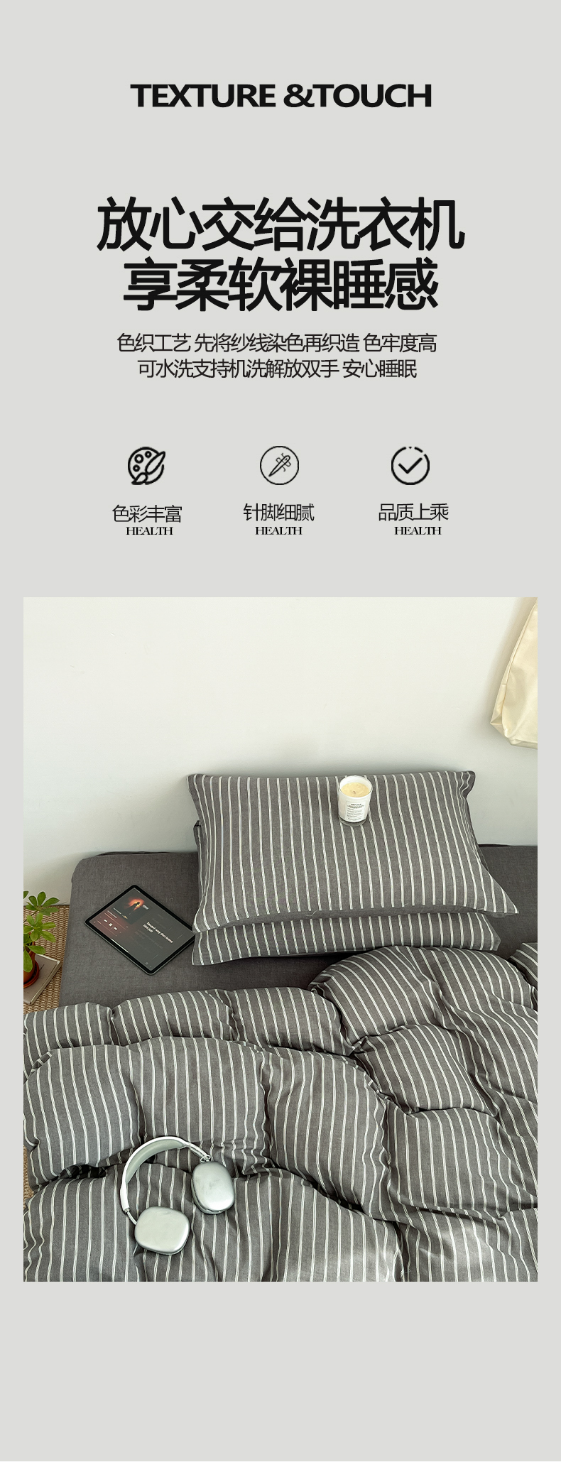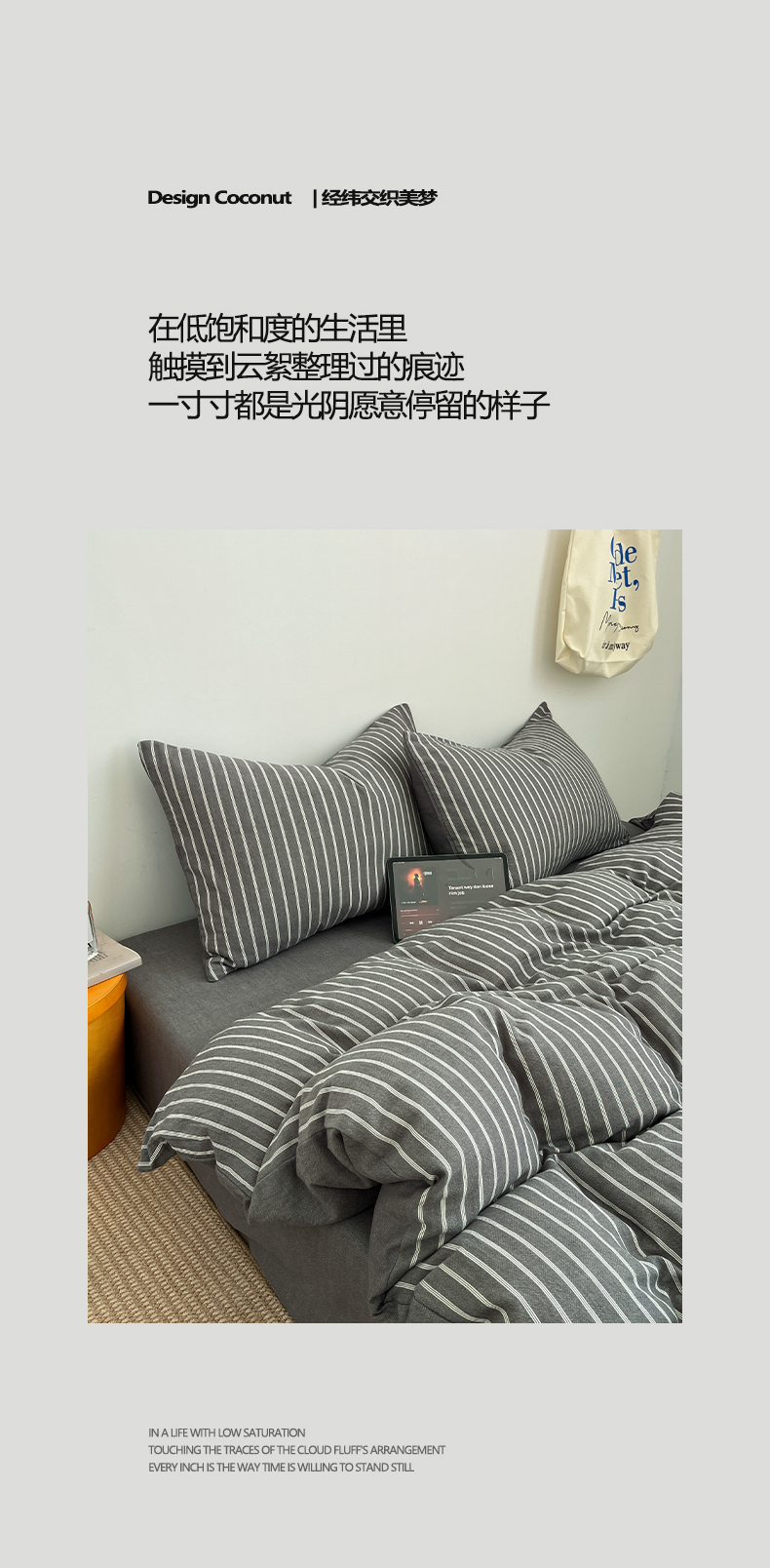 商品名称:莱茵家居 2026新款A类全棉色织日系芝麻锻纹套件-暮云系列 暮云-灰白