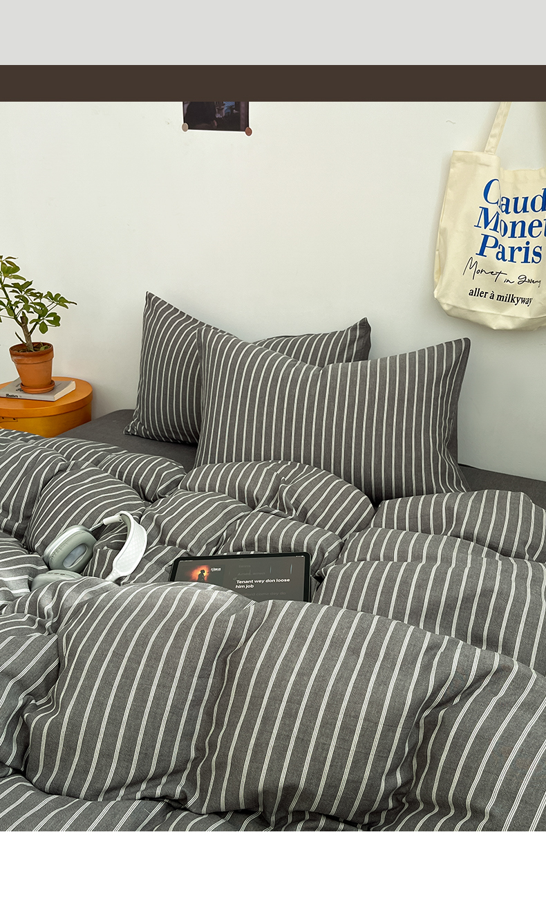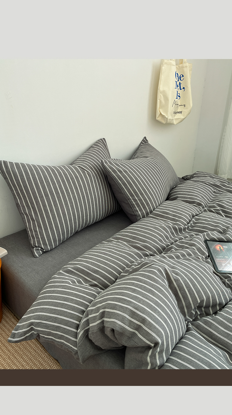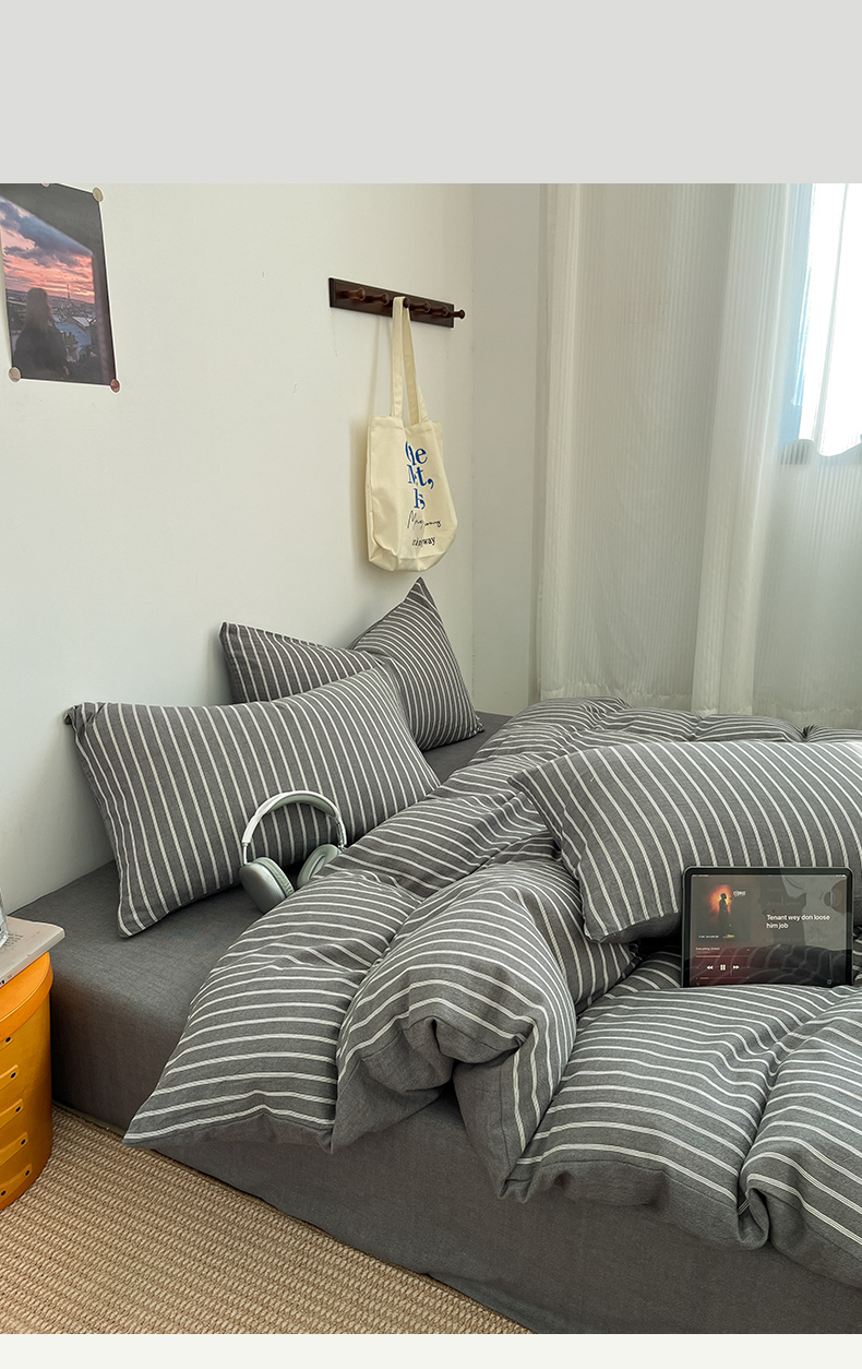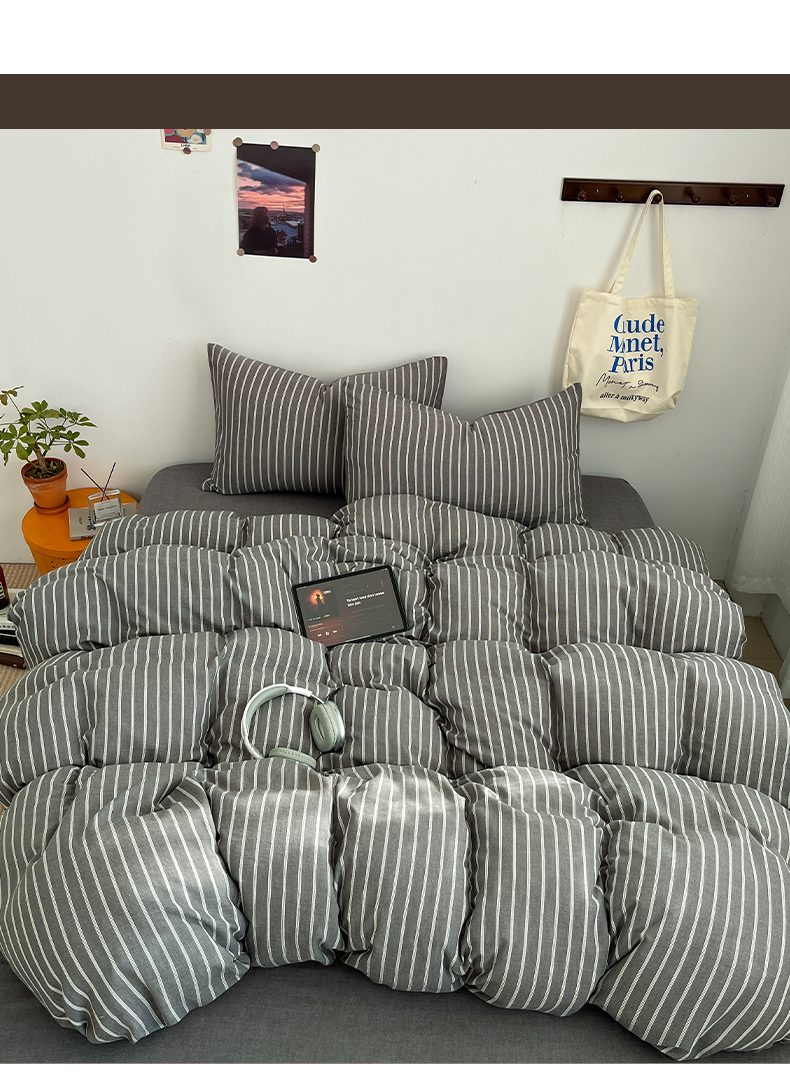 商品名称:莱茵家居 2026新款A类全棉色织日系芝麻锻纹套件-暮云系列 暮云-灰白