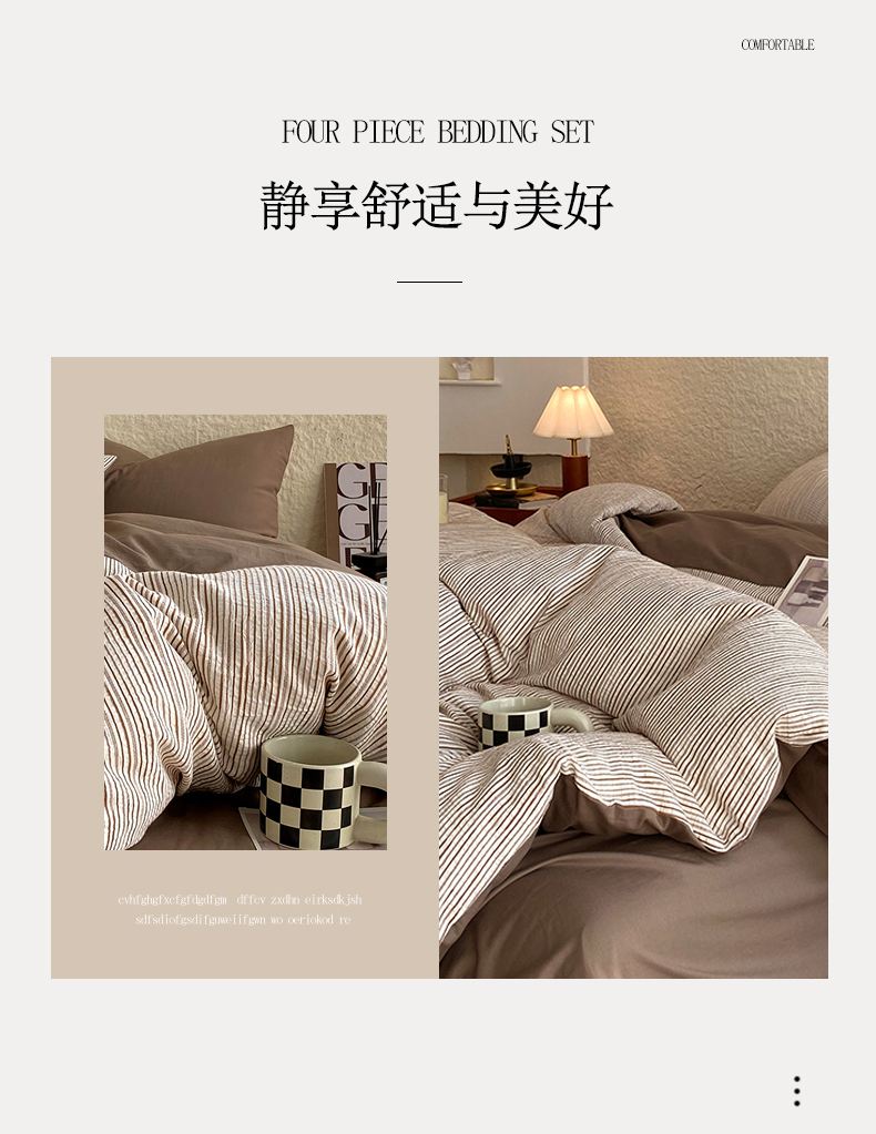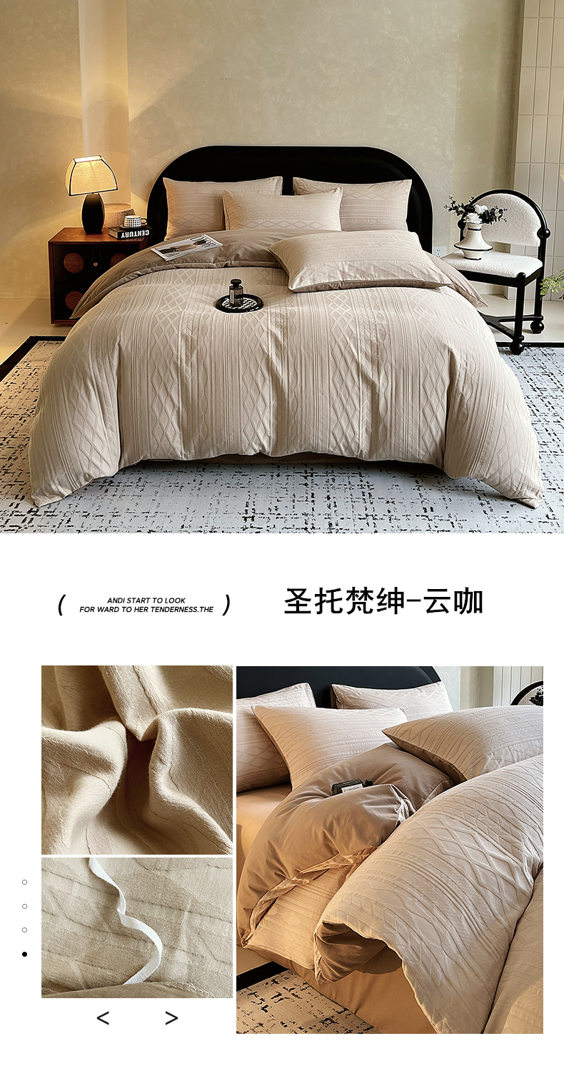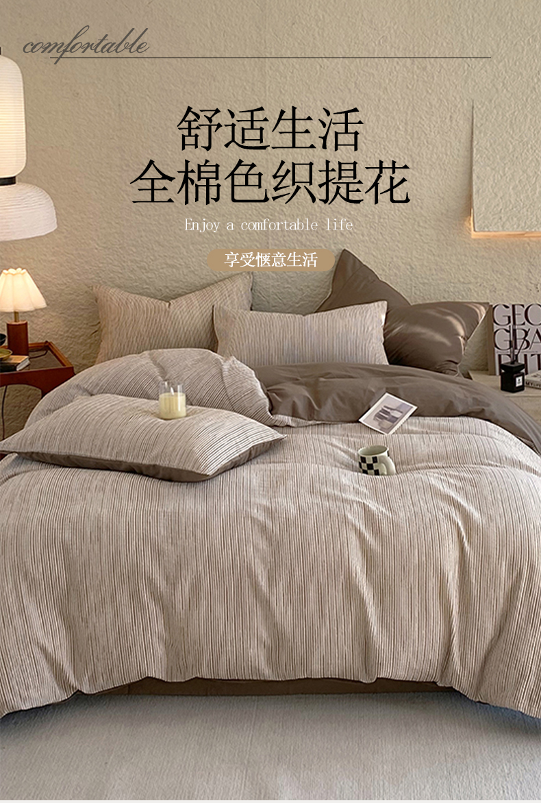 当前位置: 91家纺网 > 商品网购 > 床品套件 > 四件套 > 全棉普通四件套 > 琪格格纺织 2026新款纯棉纯棉色织肌理纹提花华夫格纯棉轻奢简约款四件套 A速写 提花棕条